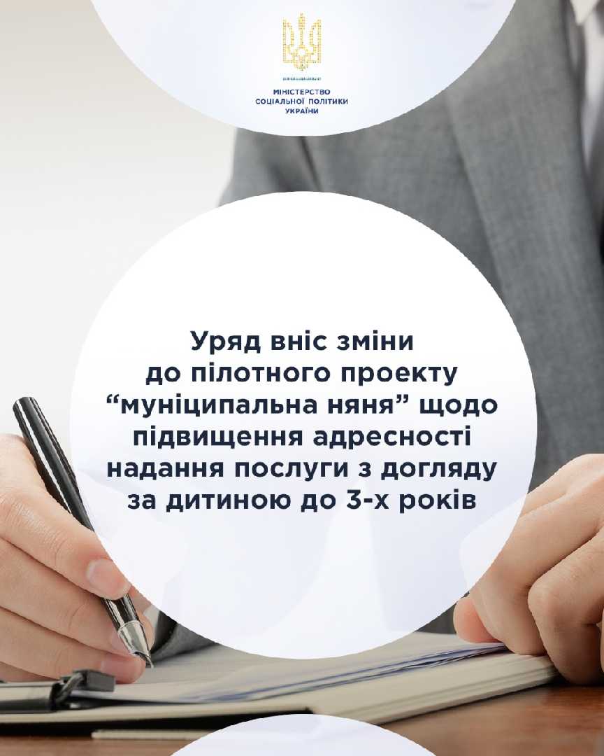 Кабінетом Міністрів затвердждено постанову ,,Про внесення змін до Порядку відшкодування вартості послуги з догляду за дитиною до трьох років „муніципальна няняˮ.