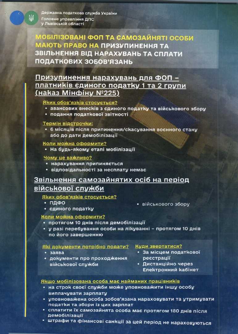 Державна податкова служба України інформує про «Гарячі лінії» для вирішення податкових питань мобілізованих ФОП та ветеранів