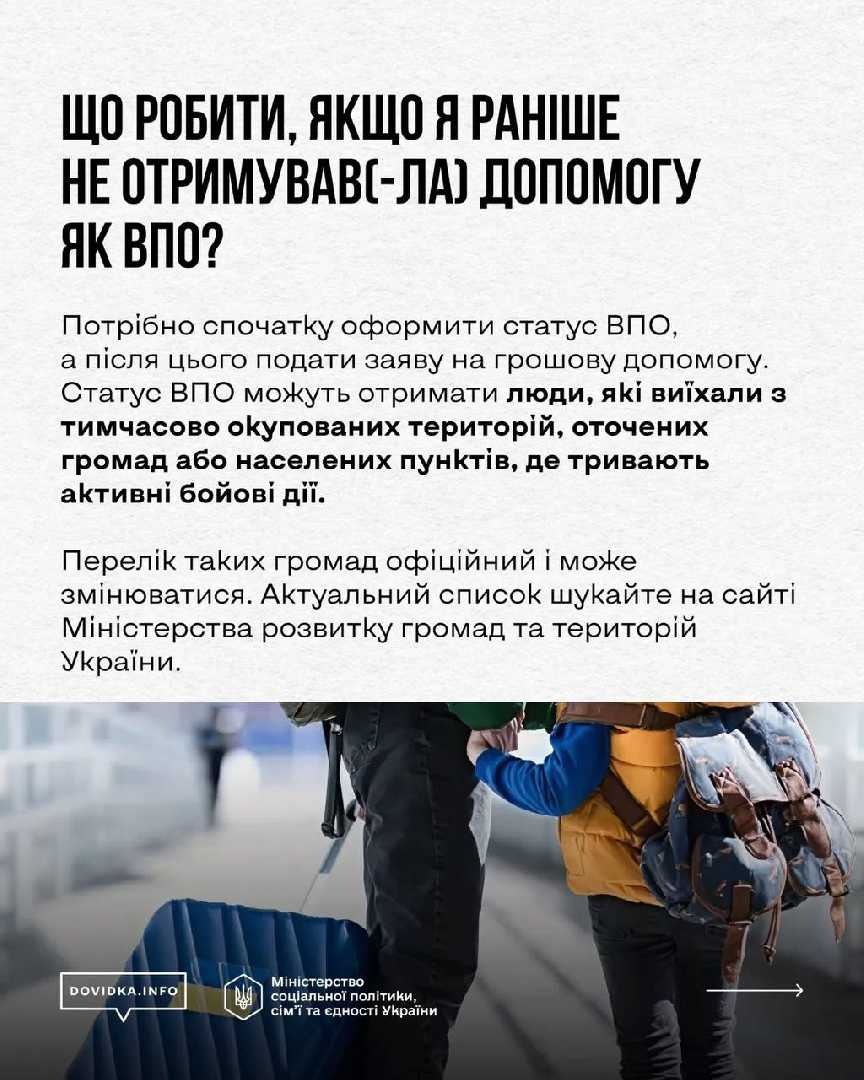 Актуальні питання-відповіді для внутрішньо переміщених осіб щодо довідки про взяття на облік внутрішньо переміщеної особи та допомоги на проживання.