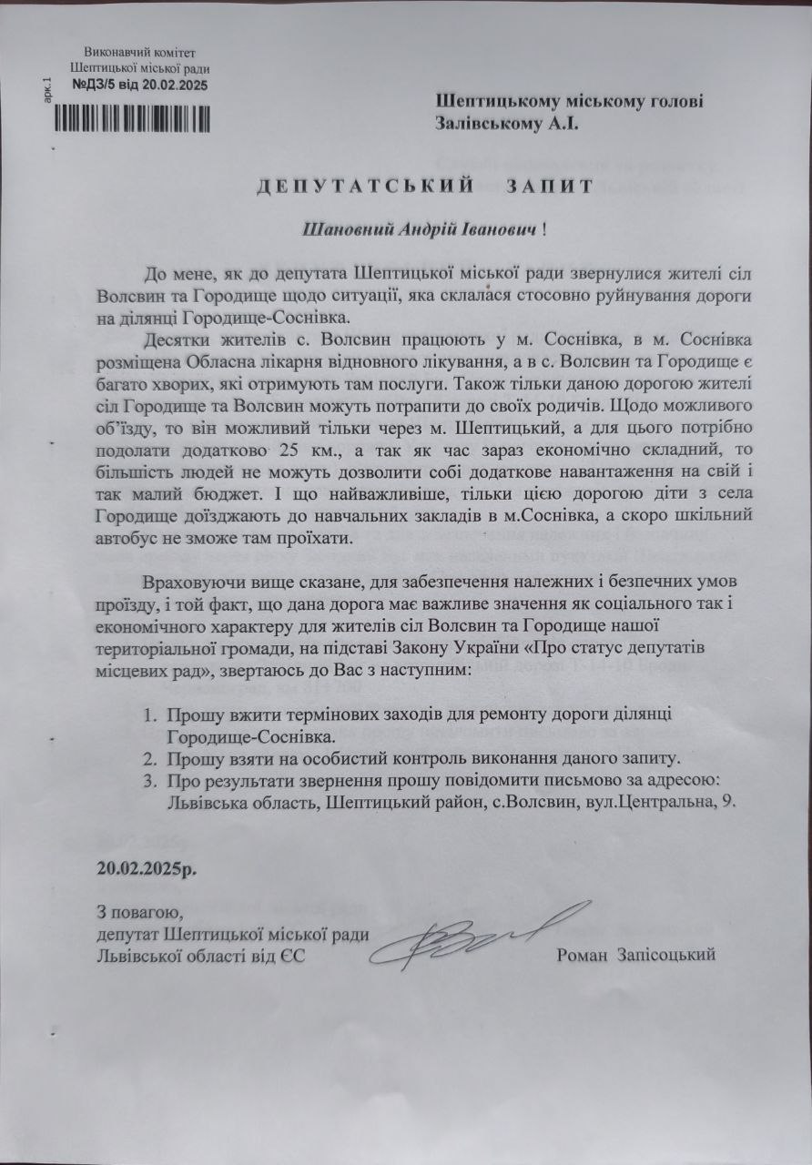 Заслухавши запит депутатiв мiської ради та вiдповiдно до частини сьомої статтi 49 Закону України «Про мiсцеве самоврядування в Українi», статей 21, 22 Закону України «Про статус депутатiв мiсцевих рад» Шептицька мiська рада,