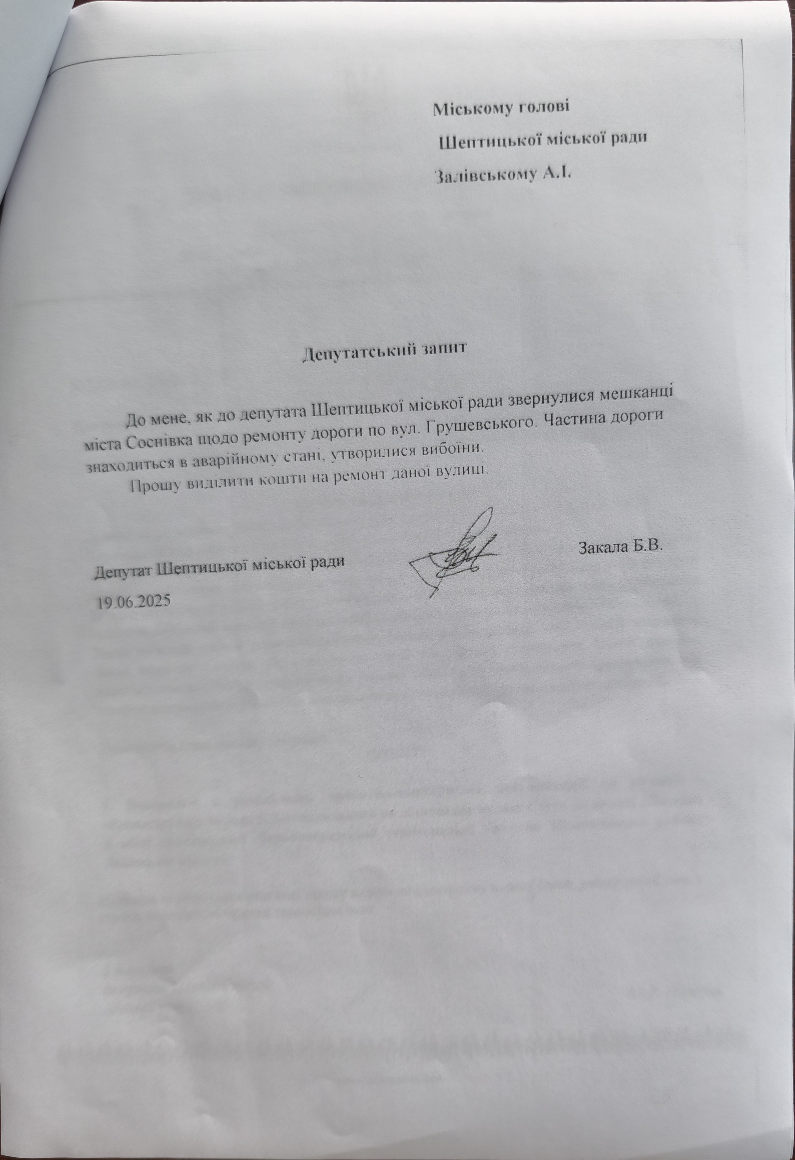 Міський голова (підпис) Андрій ЗАЛІВСЬКИЙ