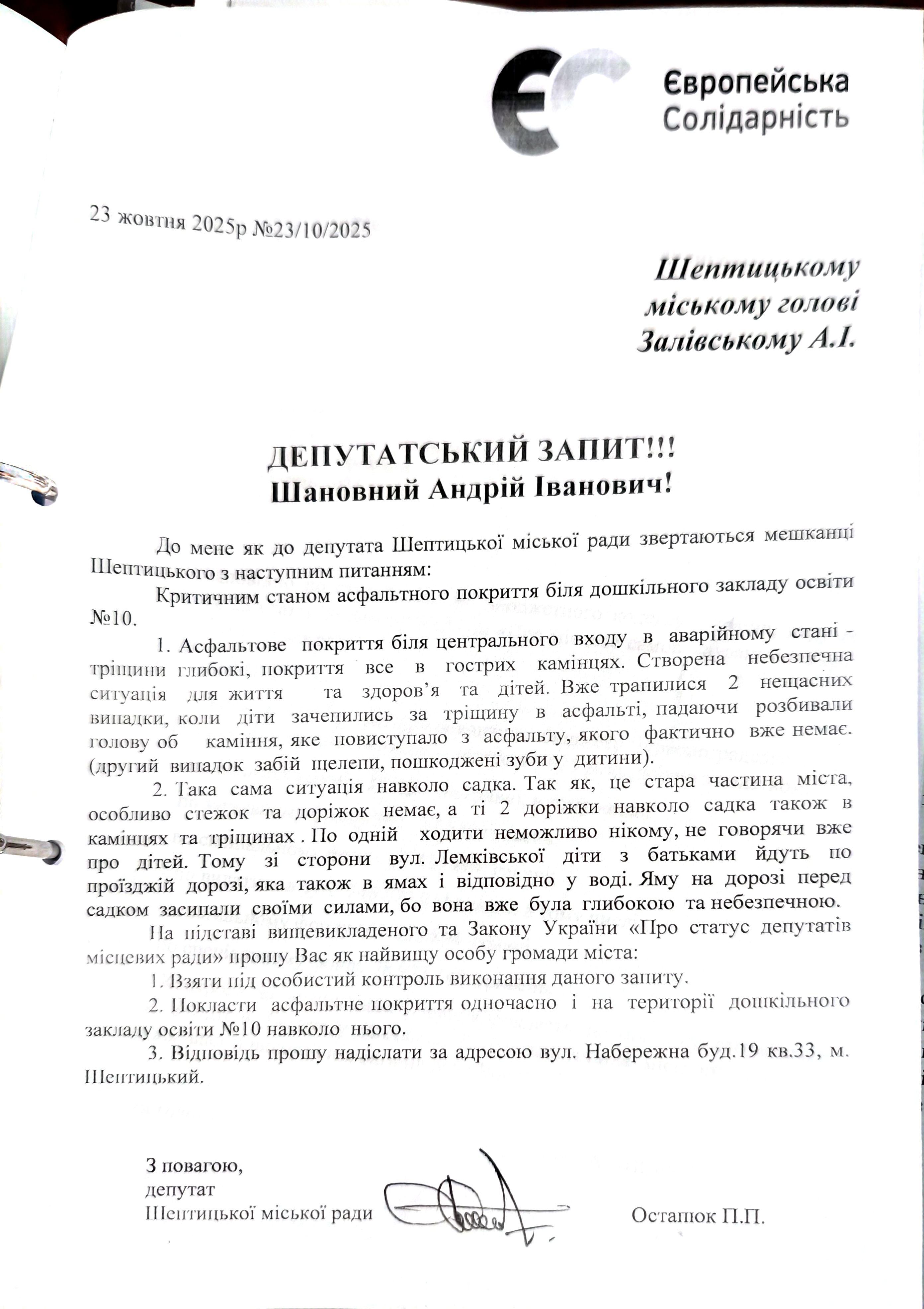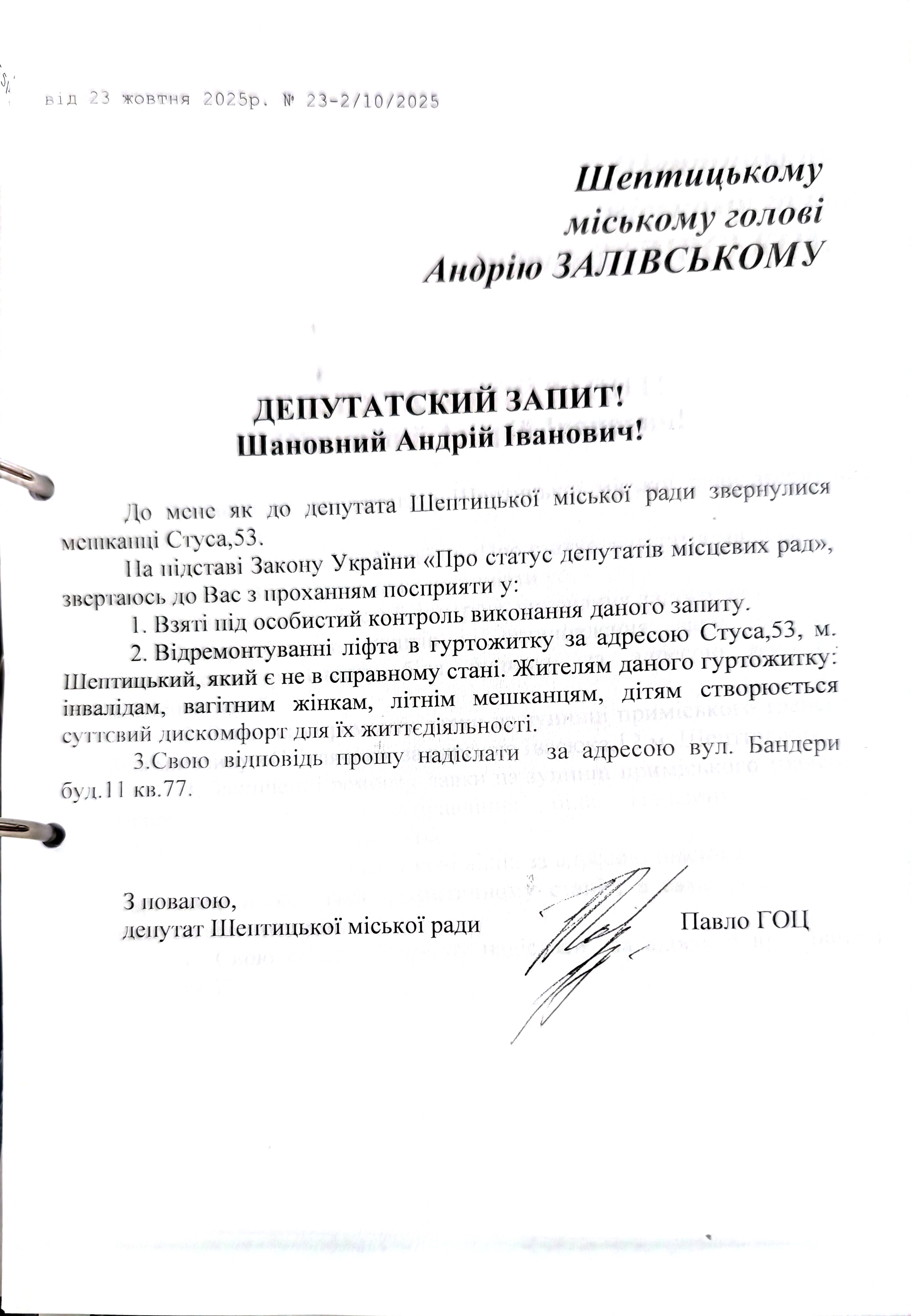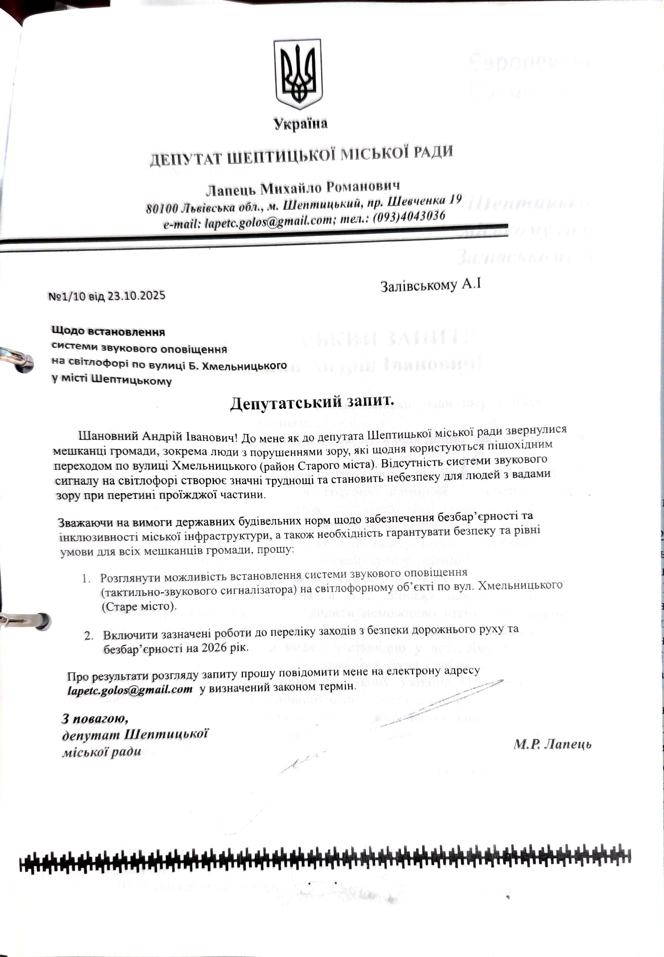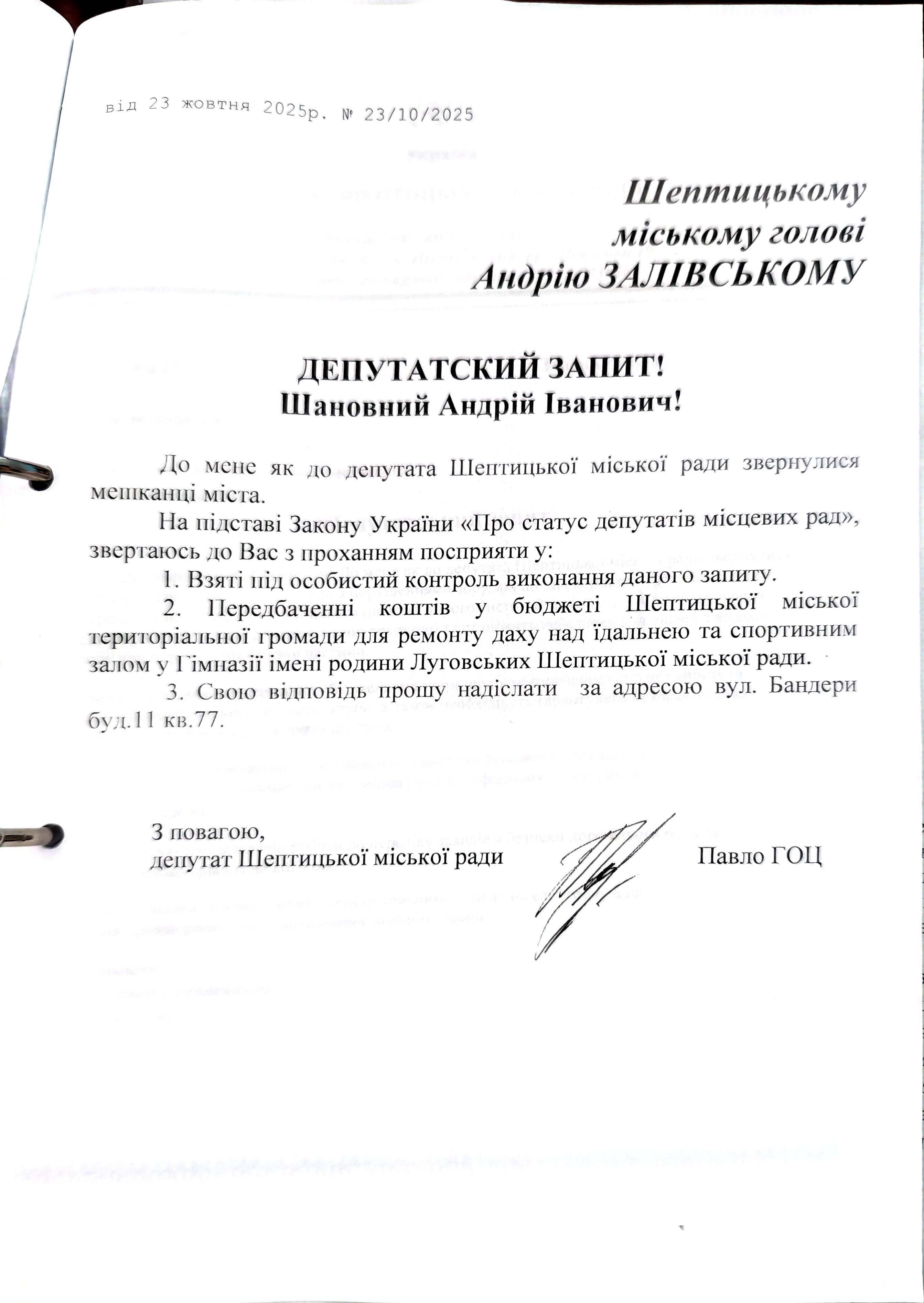 Заслухавши запит депутатiв мiської ради та вiдповiдно до частини сьомої статтi 49 Закону України «Про мiсцеве самоврядування в Українi», статей 21, 22 Закону України «Про статус депутатiв мiсцевих рад» Шептицька мiська рада,