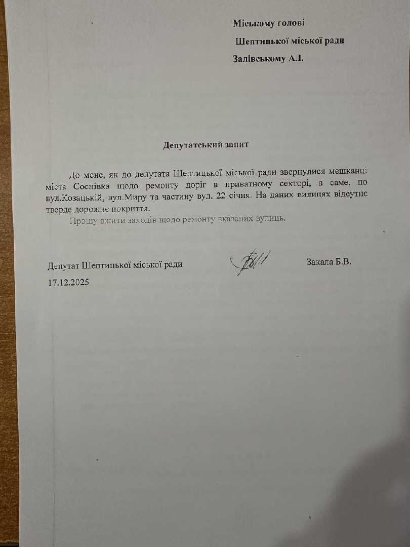Заслухавши запит депутатiв мiської ради та вiдповiдно до частини сьомої статтi 49 Закону України «Про мiсцеве самоврядування в Українi», статей 21, 22 Закону України «Про статус депутатiв мiсцевих рад» Шептицька мiська рада,