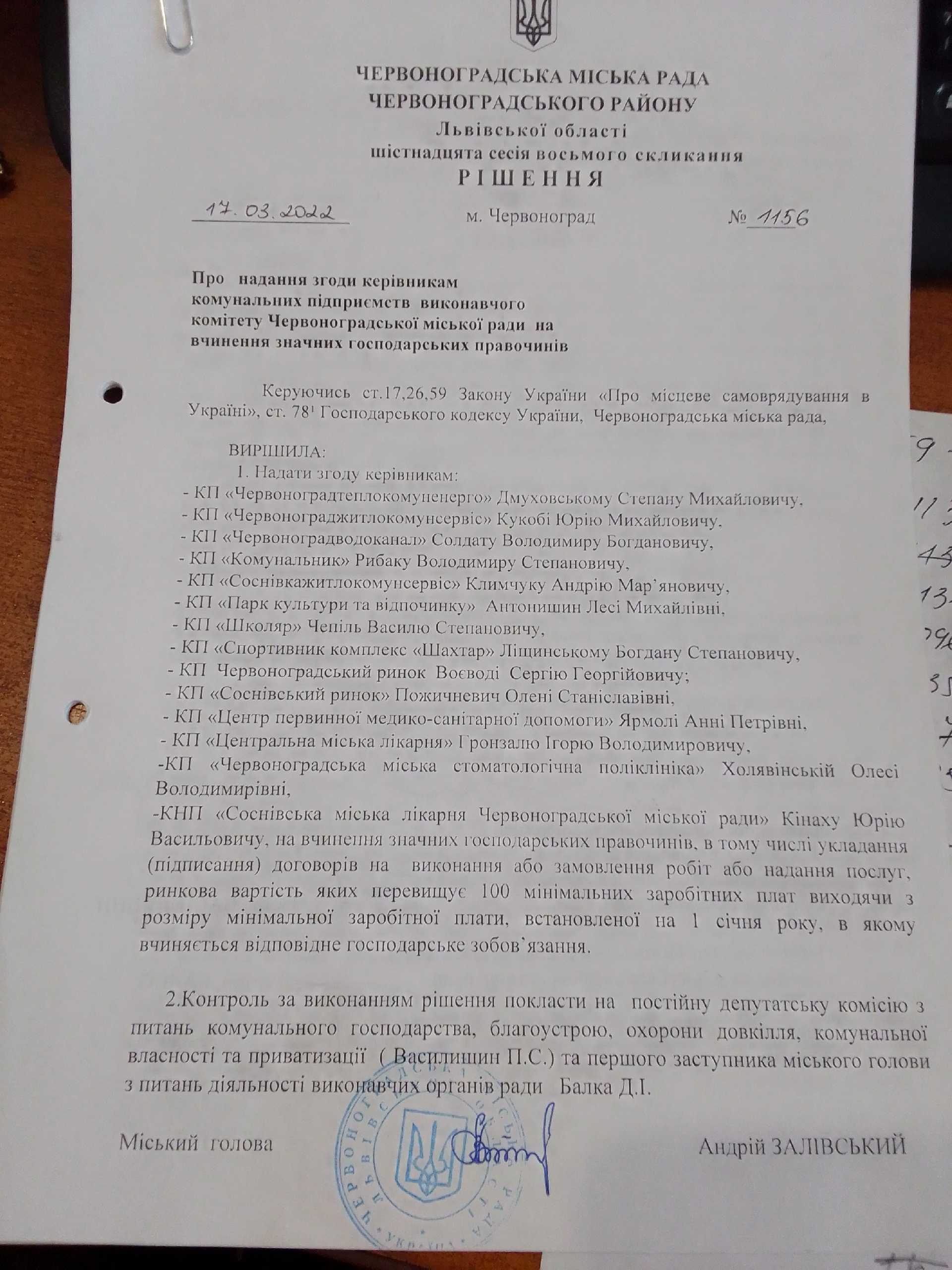 Номер рішення 1156