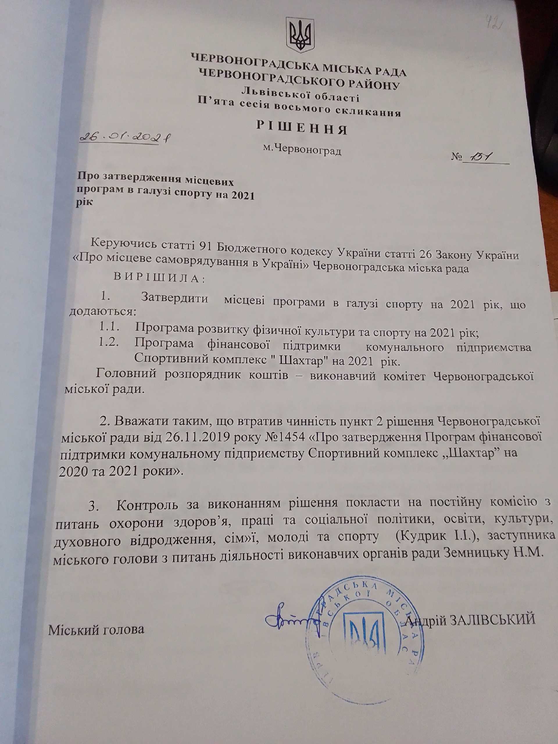 Про затвердження місцевих програм в галузі спорту на 2021 рік