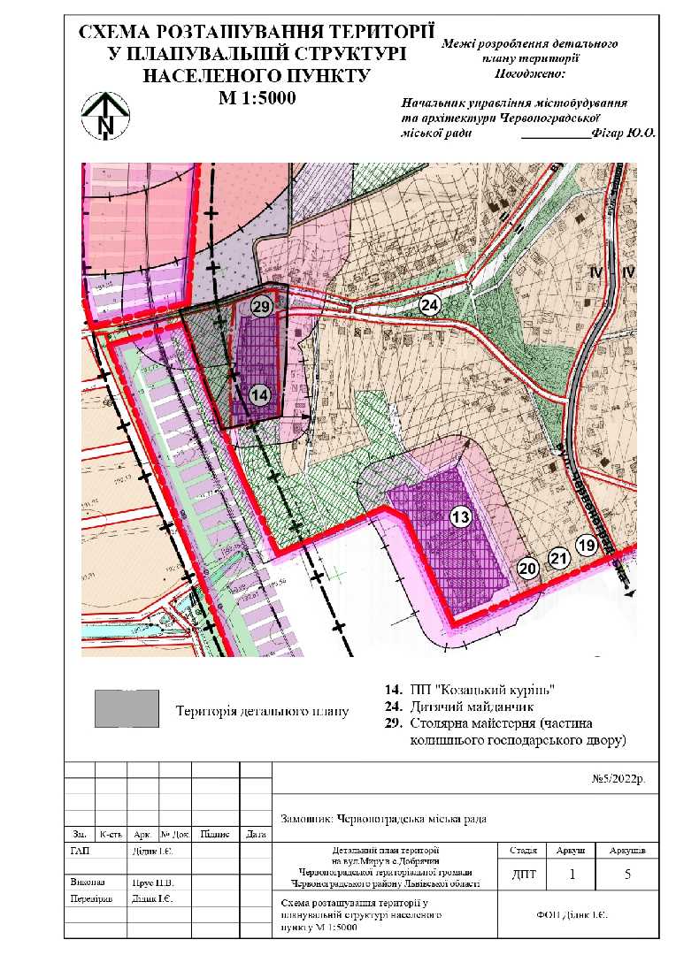 Замовником проекту ДПТ та Звіту про СЕО є виконавчий комітет Червоноградської міської ради. Підстава для розроблення ДПТ – рішення Червоноградської міської ради від 16.09.2021 року № 1737. Розробник - ФОП Дідик І.Є.