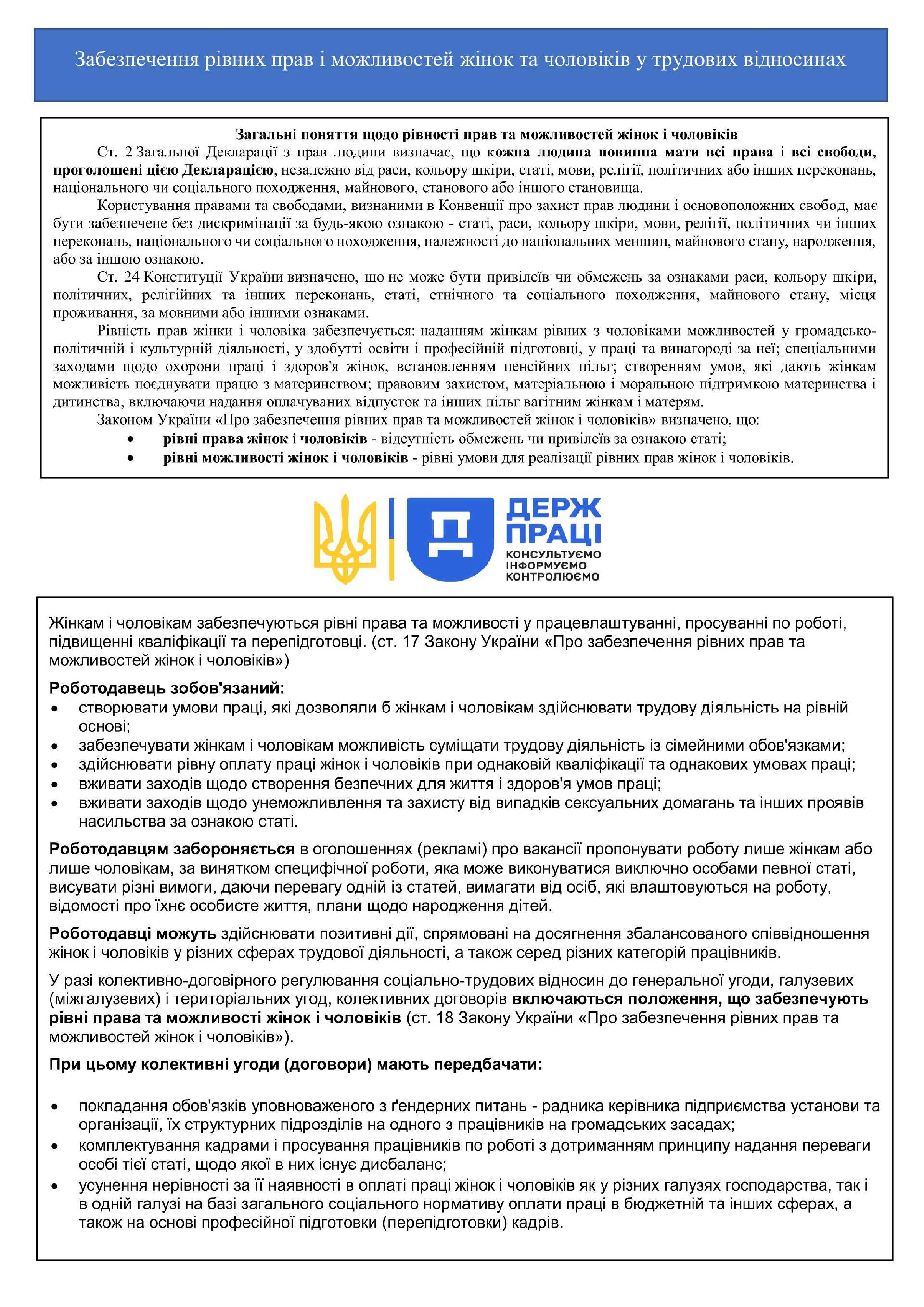 - Закон України „Про забезпечення рівних прав та можливостей жінок і чоловіків”