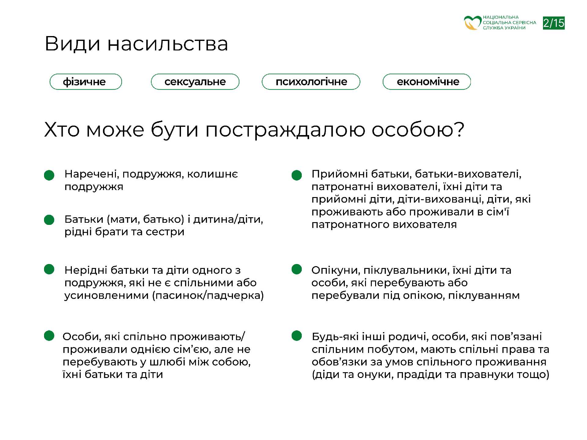 2) у разі вчинення домашнього насильства стосовно дитини – батьки або інші законні представники дитини, родичі дитини (баба, дід, повнолітні брат, сестра), мачуха або вітчим дитини, а також орган опіки та піклування;