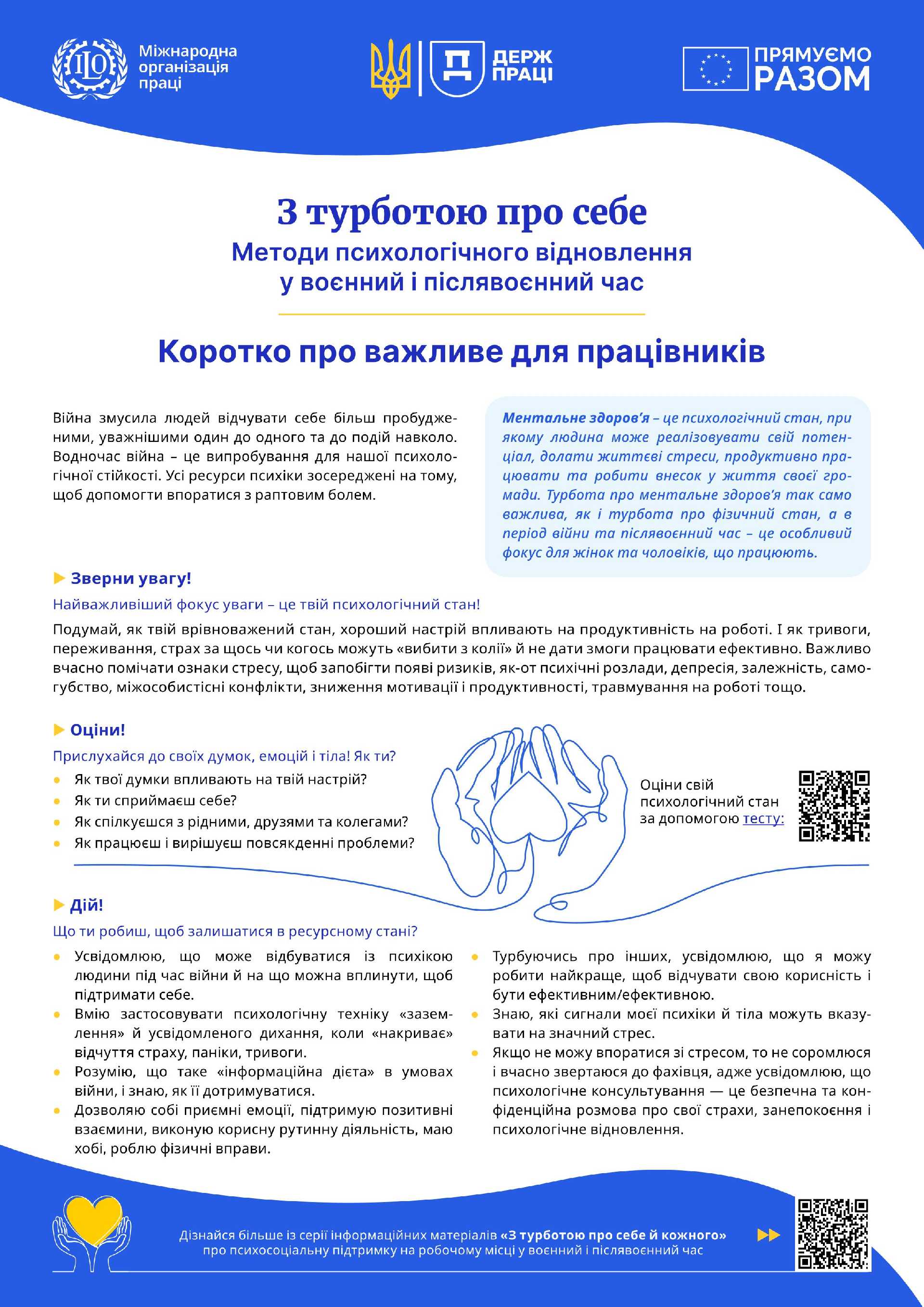 Питання психосоціальної підтримки на робочому місці, протидії дискримінації і мобінгу, дотримання прав працівників з інвалідністю, рівних прав і можливостей жінок та чоловіків на робочому місці.
