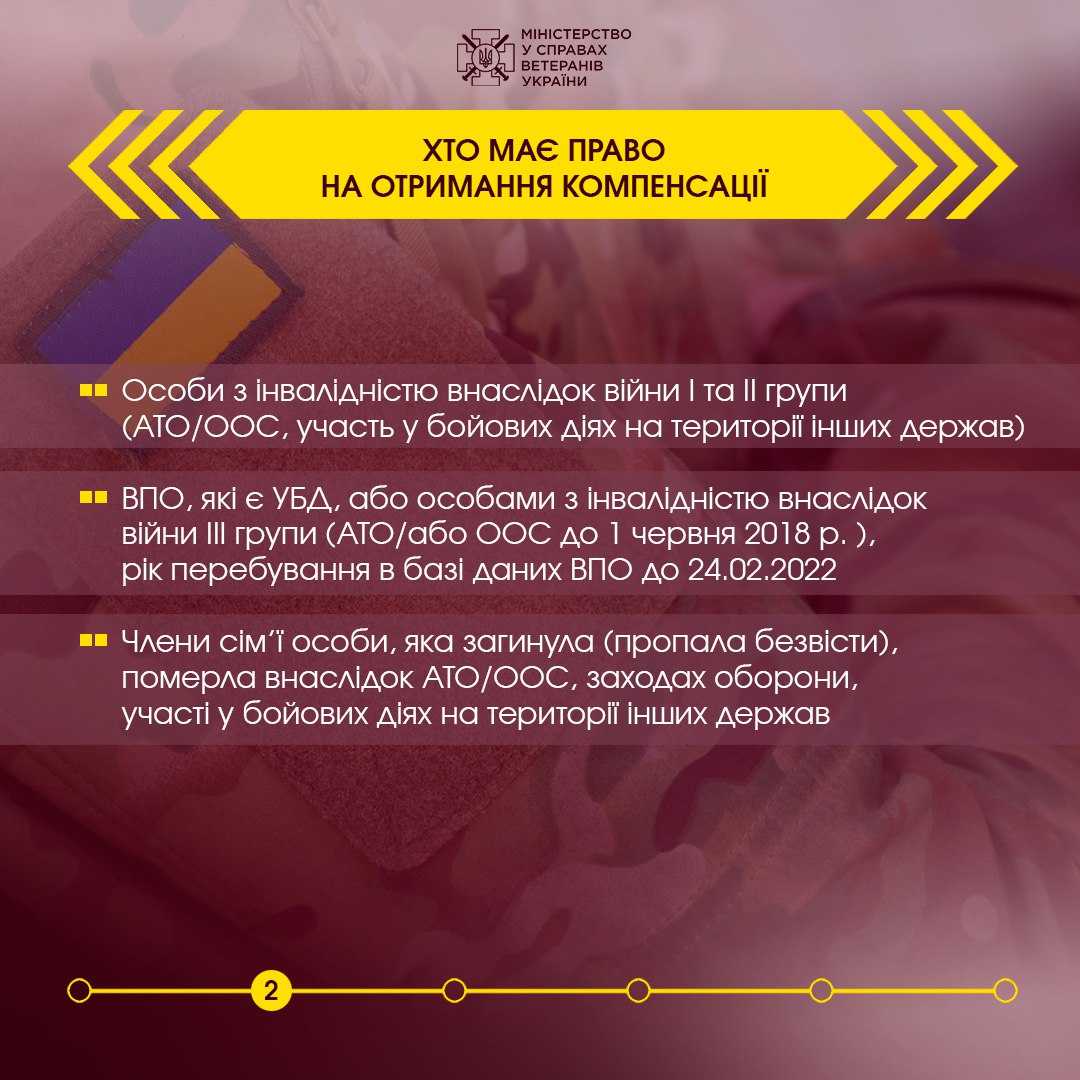 - ветерани зі статусом УБД або інвалідністю внаслідок війни, які брали участь в АТО/ООС або боронили Україну від російської агресії;