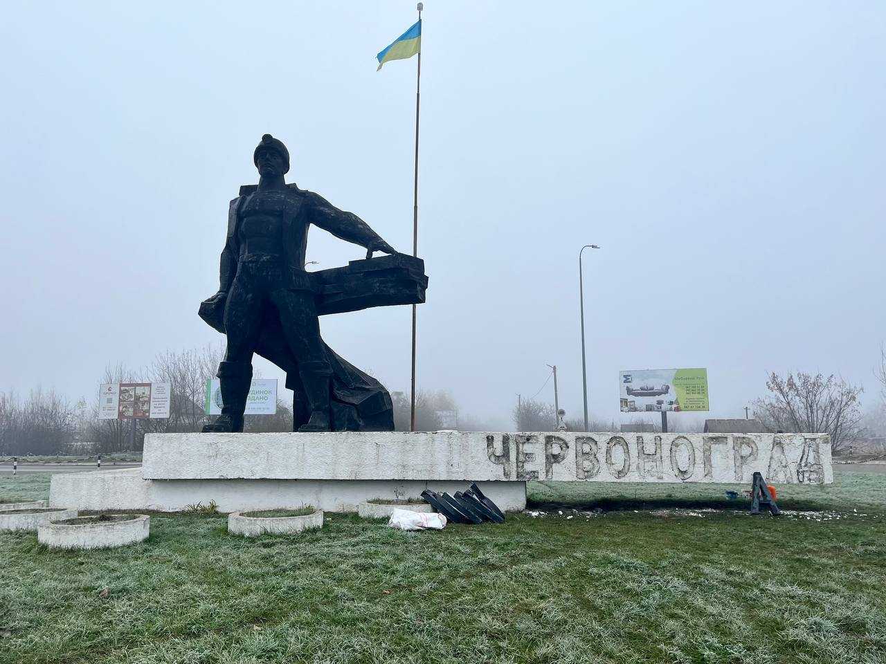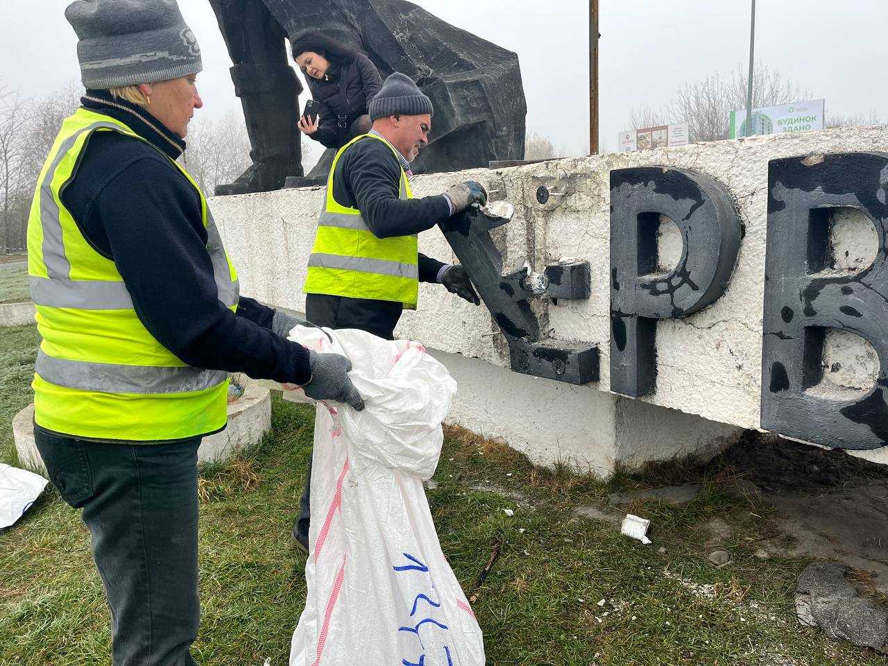 Відповідно до доручення першого заступника міського голови Дмитра Балка сьогодні працівники КП «Комунальник» демонтували літери старої назви міста з пам’ятника Шахтарю.