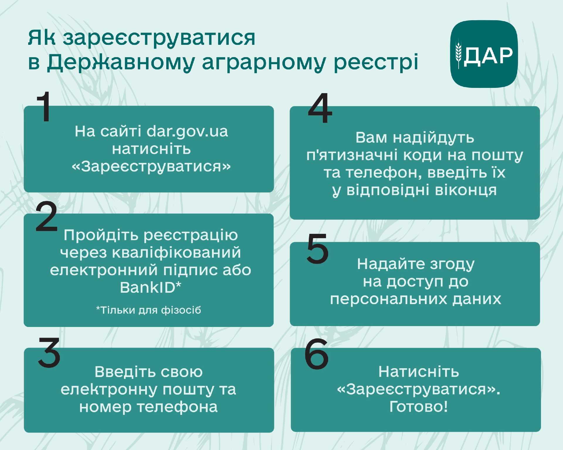 Доступ до Державного аграрного реєстру: www.dar.gov.ua