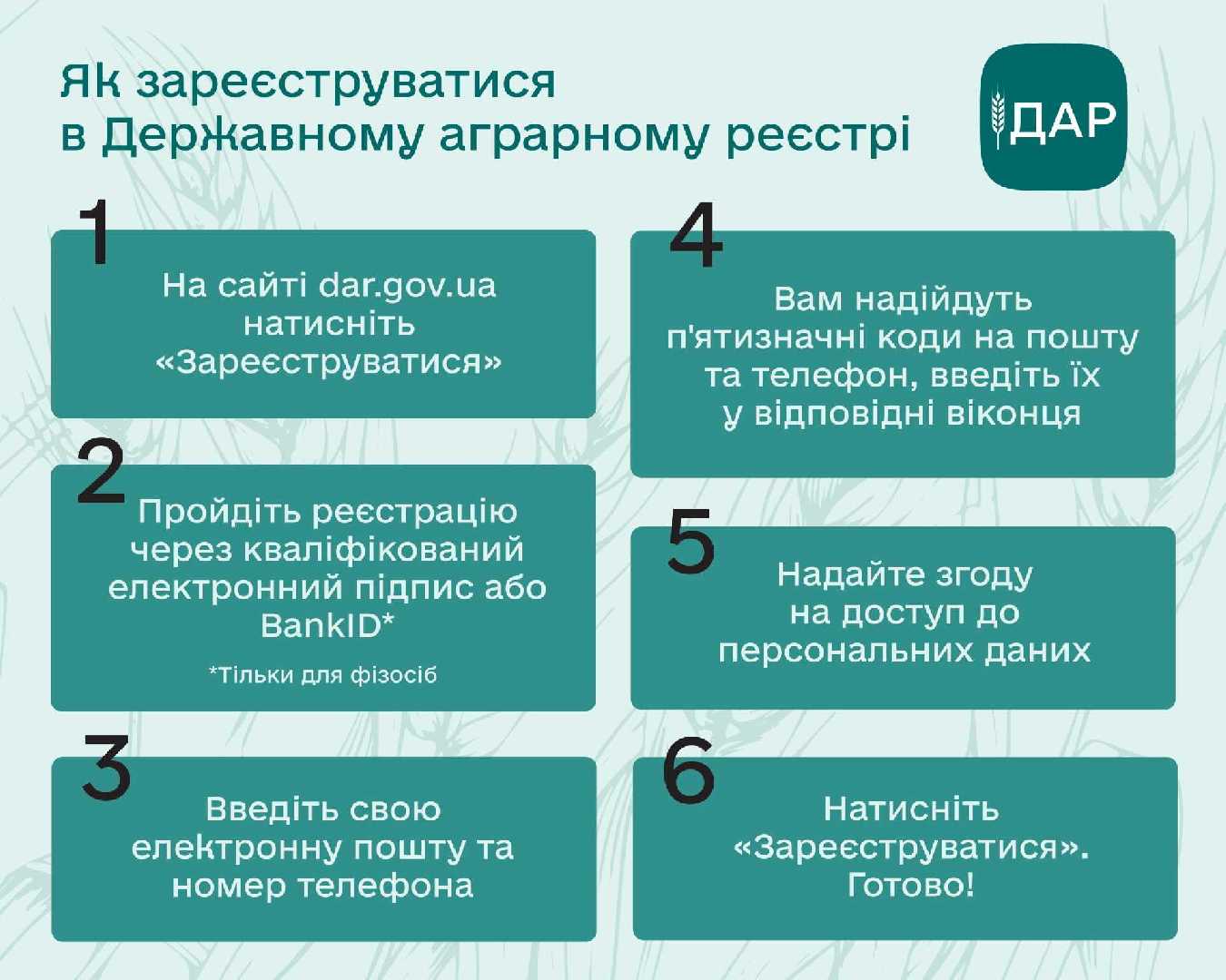 Доступ до Державного аграрного реєстру: www.dar.gov.ua
