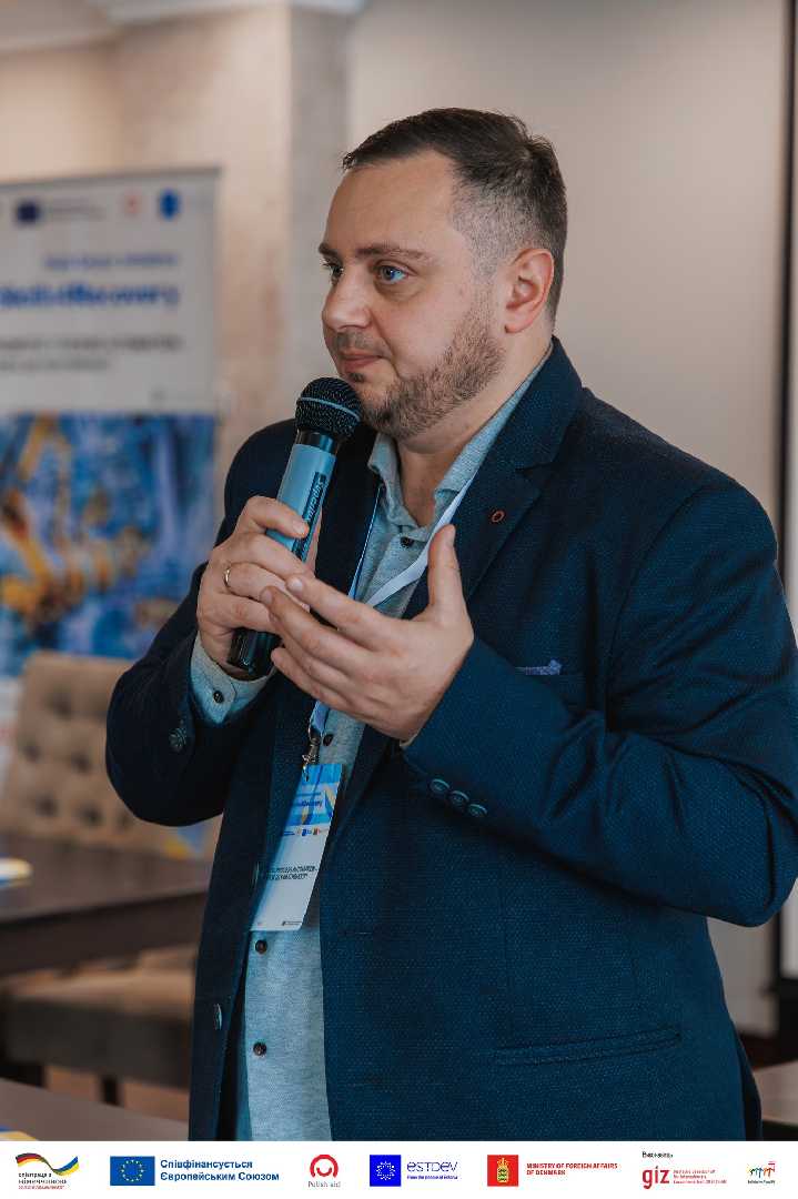 Про застосування інноваційних методів у будівельній сфері розповів Любомир Жовтуля з Університету Короля Данила, який презентував досвід упровадження лазерних технологій у підготовку архітекторів.
