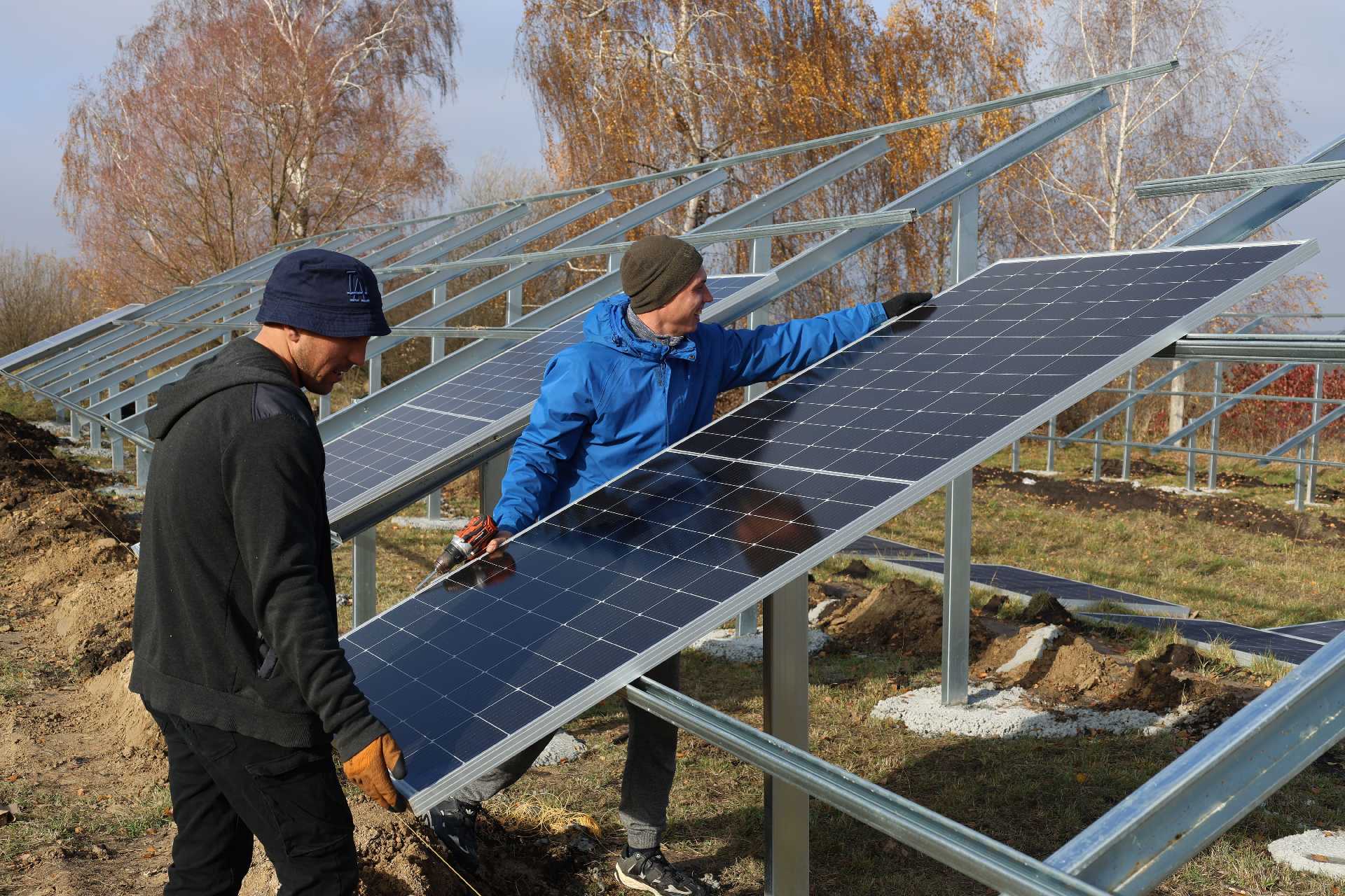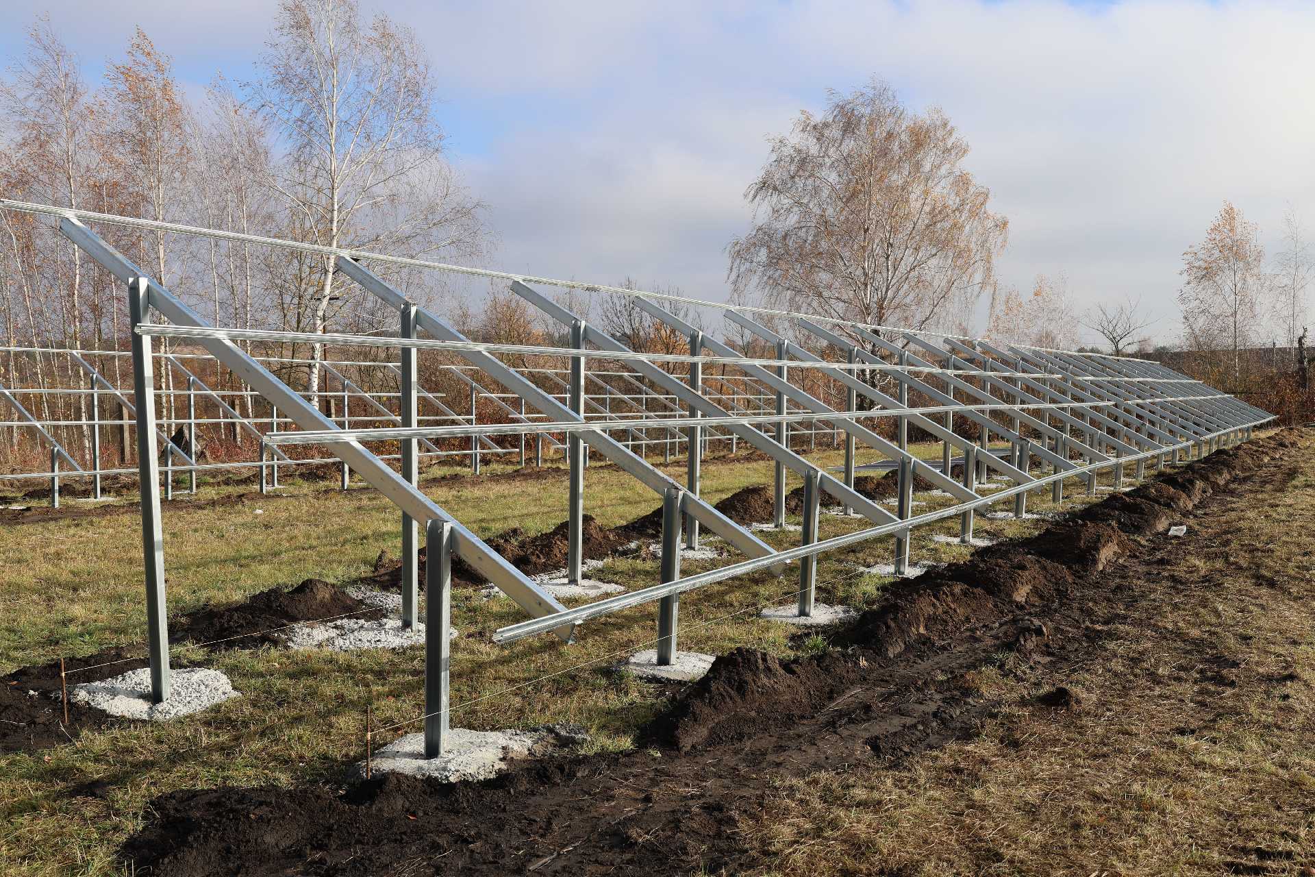 Як розповів представник підрядника Олександр Яковенко, працівники вже змонтували металеві конструкції, на які встановлюватимуть сонячні панелі. «Після цього прокладаємо кабельну мережу, підводимо її до трансформаторів. Далі встановлюємо та підключаємо інверторне обладнання, а також щити захисту по змінному та постійному струму» - розповів Олександр.
