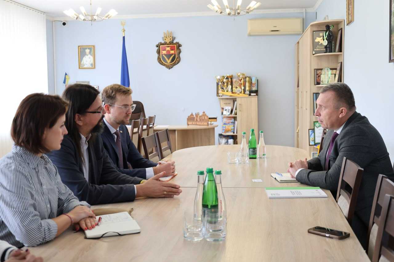 Під час зустрічі з Максиміліаном Тоннером, керівницею компонента Програми «Power for Just Transition» Галиною Литвин, а також радниками з питань регіонального та муніципального розвитку програми Олегом Мусієм та Каріною Міськовою, міський голова Андрій Залівський обговорив реалізовані в громаді проєкти у партнерстві з GIZ за кошти німецького уряду та подальші кроки втілення Плану справедливої трансформації.