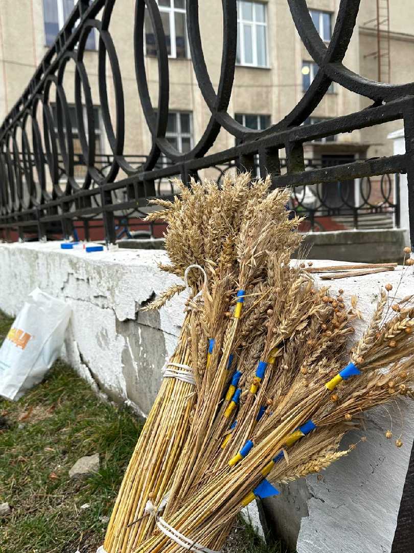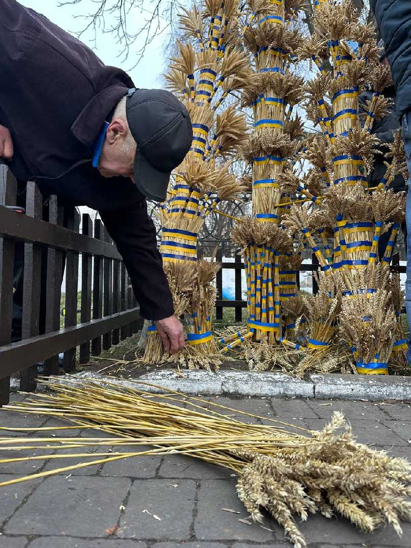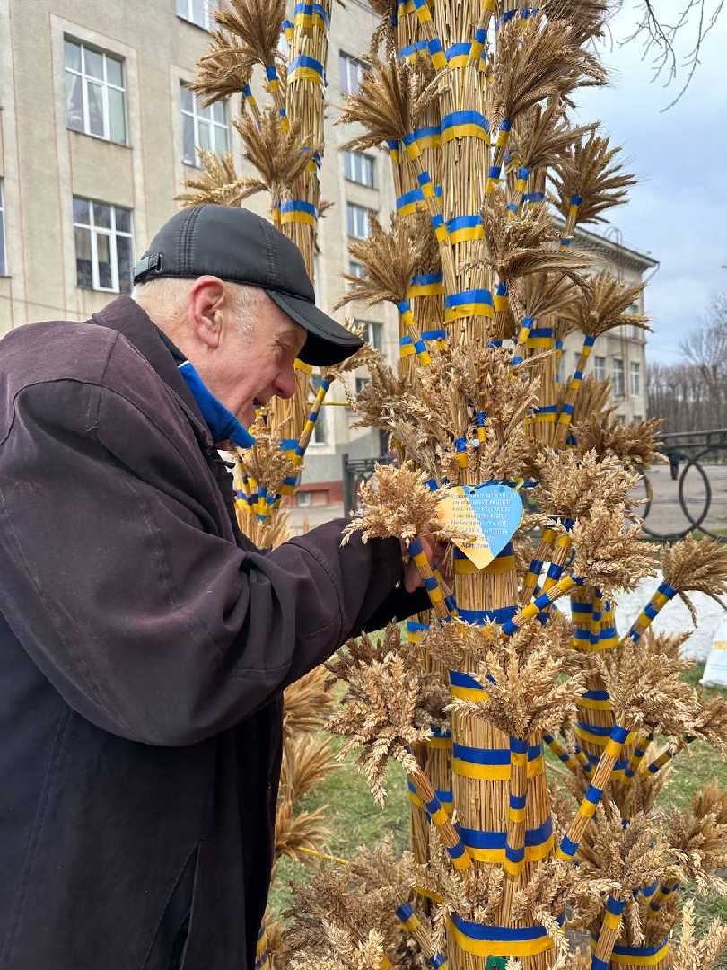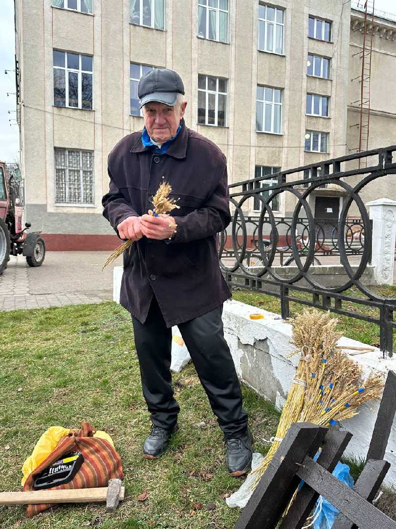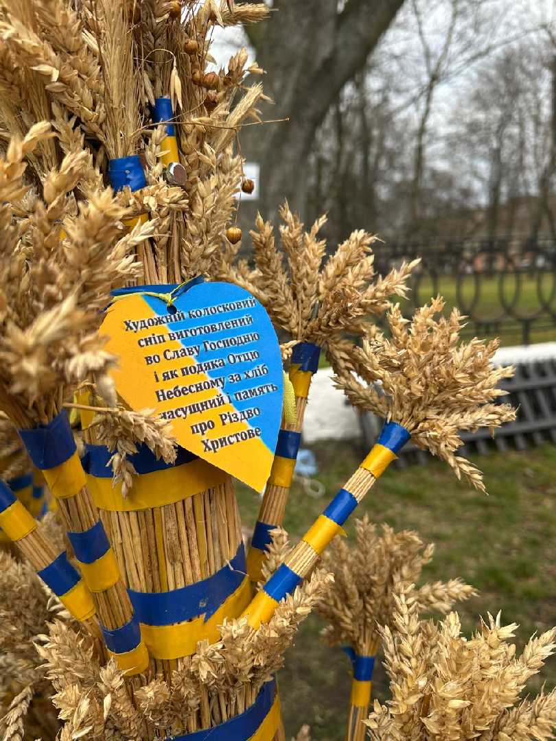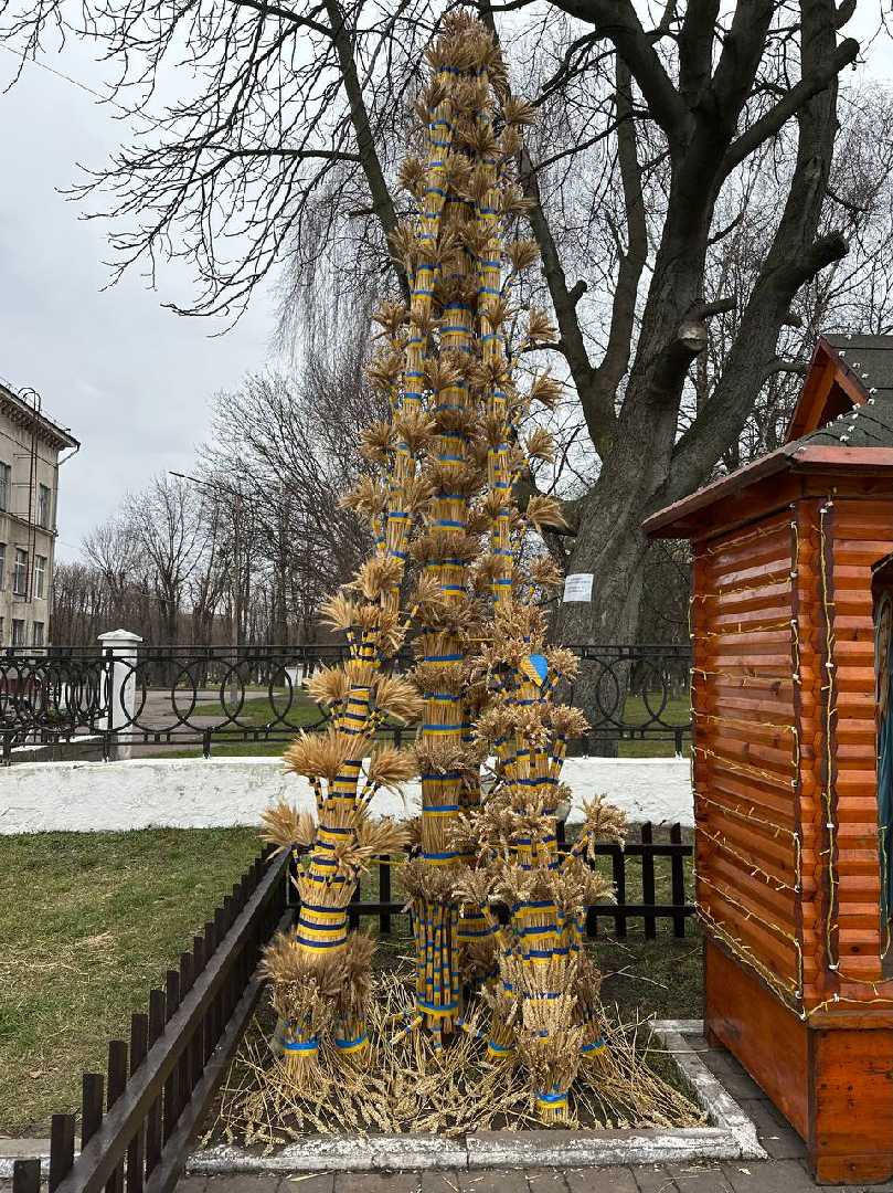 Комунальники змонтували різдвяну шопку, а поруч майстер Василь Герус завершив свою роботу над чотириметровим колосковим снопом.