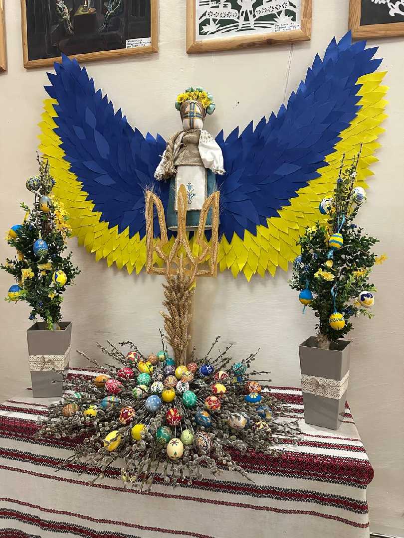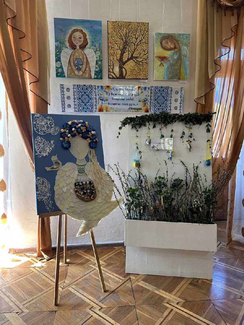 Ангел із жовто-блакитними крилами, паска з маскувальних сіток, вервичка з писанок, фотографії наших Героїв – тих, хто боронить наш спокій на передовій, і тих, хто Янголами вічно триматиме небо над нами – загалом 20 міні-виставок, які створили вихованці шептицьких загальноосвітніх закладів, ЗДО№18, Будинок дитячої та юнацької творчості, Школа мистецтв, студія образотворчого мистецтва при Народному домі, вихованці навчально-реабілітаційного центру «Світанок», громадські організації «Ніка» та «Промінь надії», гурток рукоділля та художньої праці «Ласка» Народного дому й Музей історії релігії.