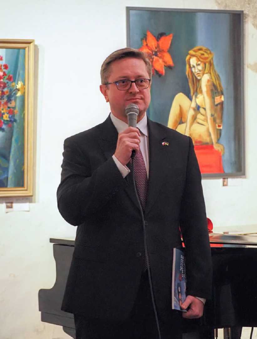 Відкриття експозиції відвідав Посол України в Чехії Василь Зварич із дружиною Вікторією. Під час відкриття Посол наголосив на особливій місії творчості під час війни: «Мистецтво сьогодні відіграє справді унікальну роль. В умовах протистояння російській агресії українське мистецтво навпаки проживає ренесанс, і таким чином ми всі даємо Путіну відповідь, що Україна була, Україна є і Україна буде жити і творити. І українське мистецтво завжди буде невід'ємною частиною європейського і світового культурного простору».