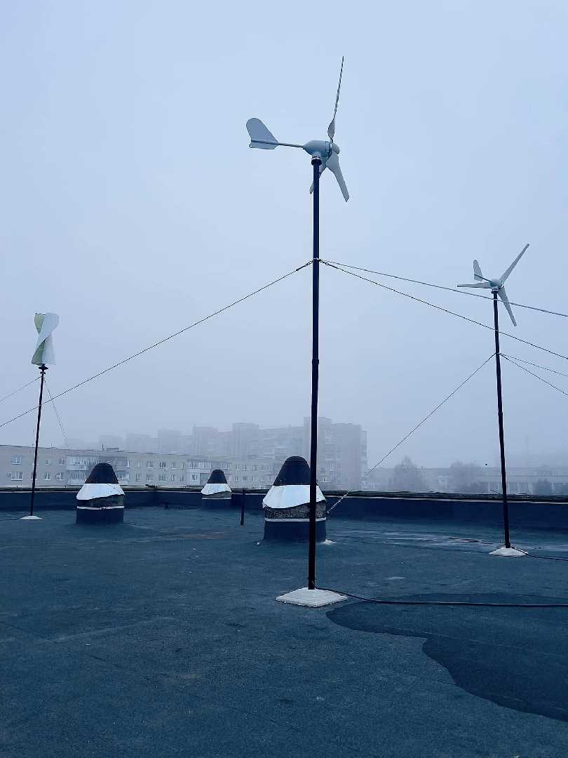 -вертикальною вітровою електростанцією (5 кВт) та горизонтальною (1,2 кВт)