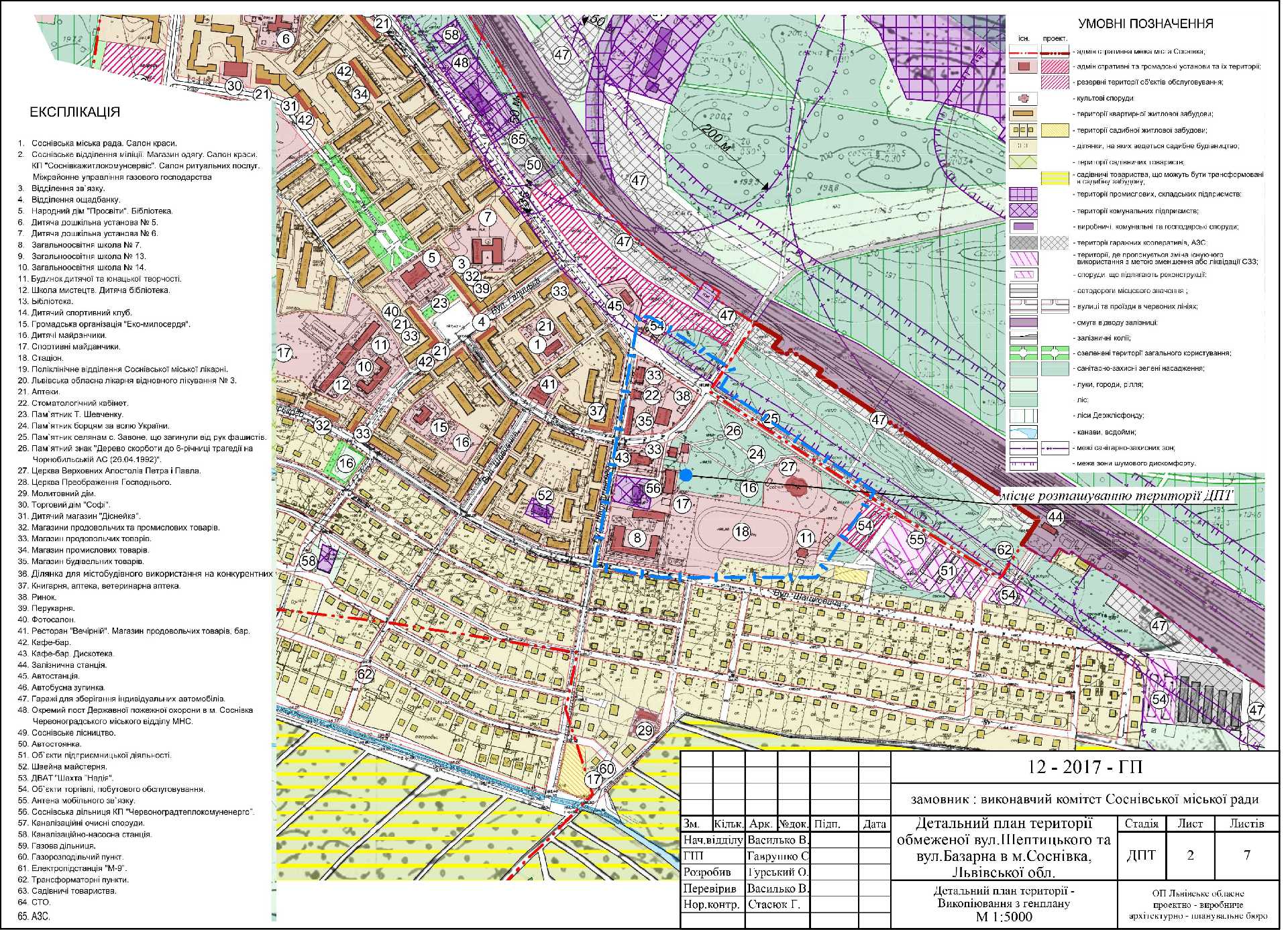 Детальний план територiї обмеженої вул. Шептицького та вул. Базарна в м . Соснівка затверджений рішенням Соснівської міської ради від 22.12.2017 № 219
