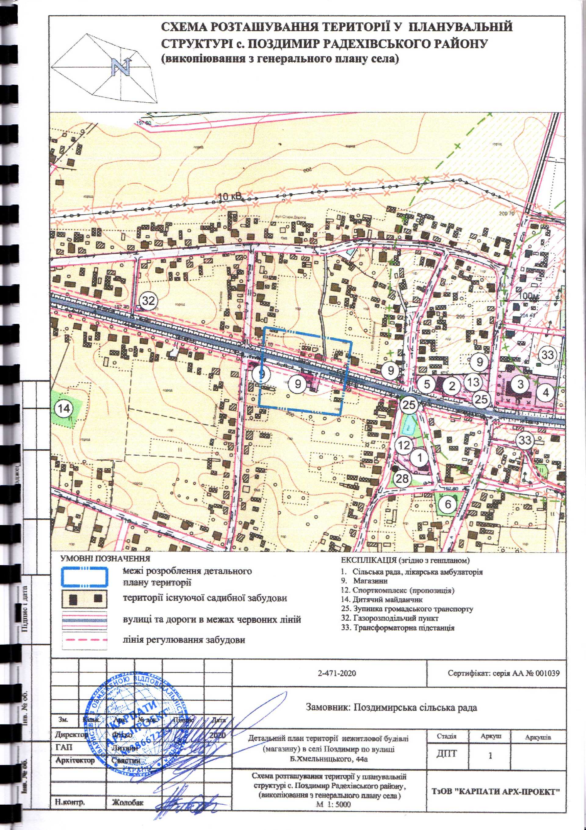 Детальний план території нежитлової будівлі ( магазину ) в селі Поздимир по вулиці Б.Хмельницького, 44 "а"
