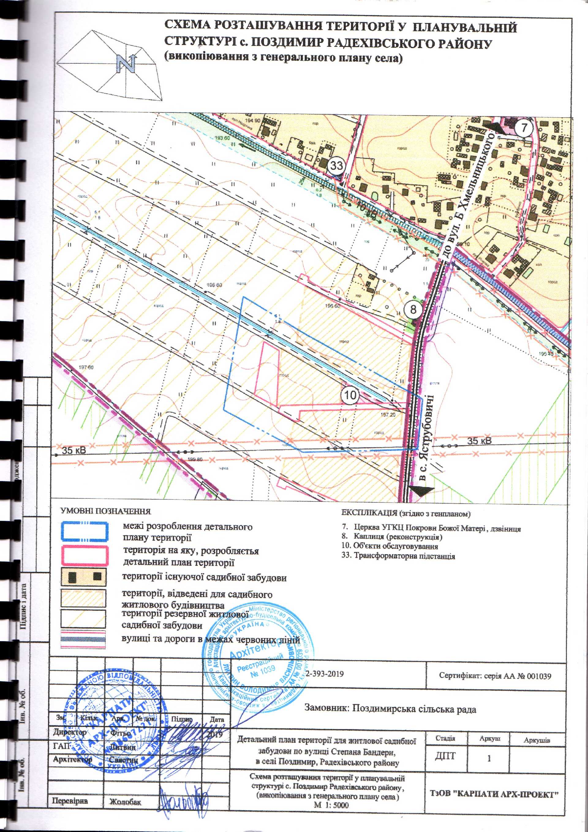 Детальний план території для житлової садибної забудови по вулиці Степана Бандери в селі Поздимир Радехівського району