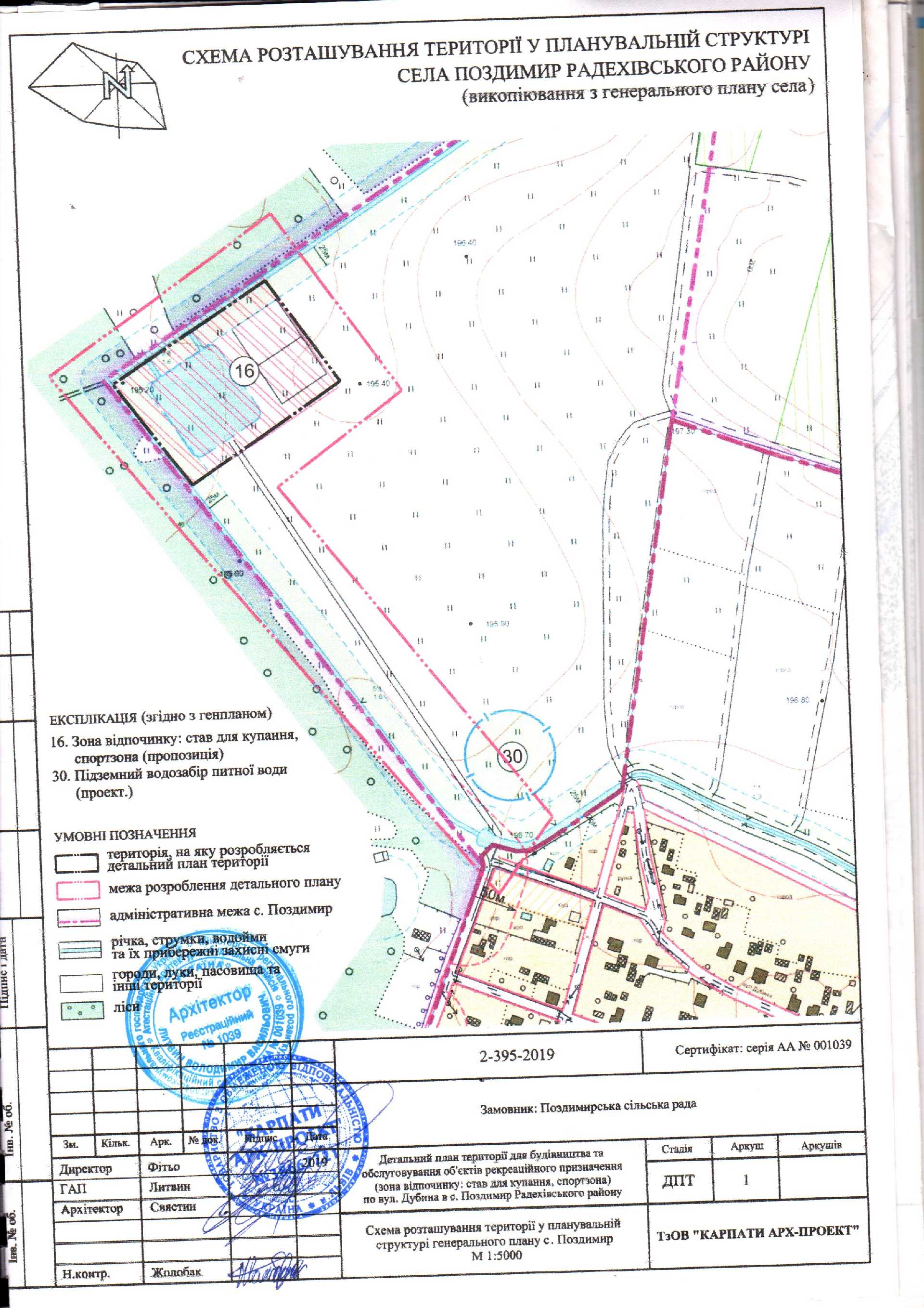 Детальний план території для будівництва та обслуговування об'єктів рекреаційного призначення ( зона відпочинку : став для купання, спортзона ) по вулиці Дубина в селі Поздимир Радехівського району