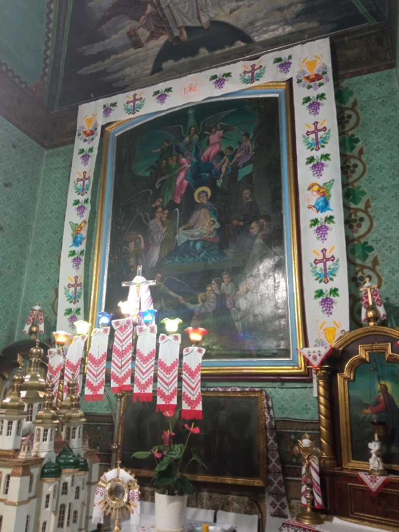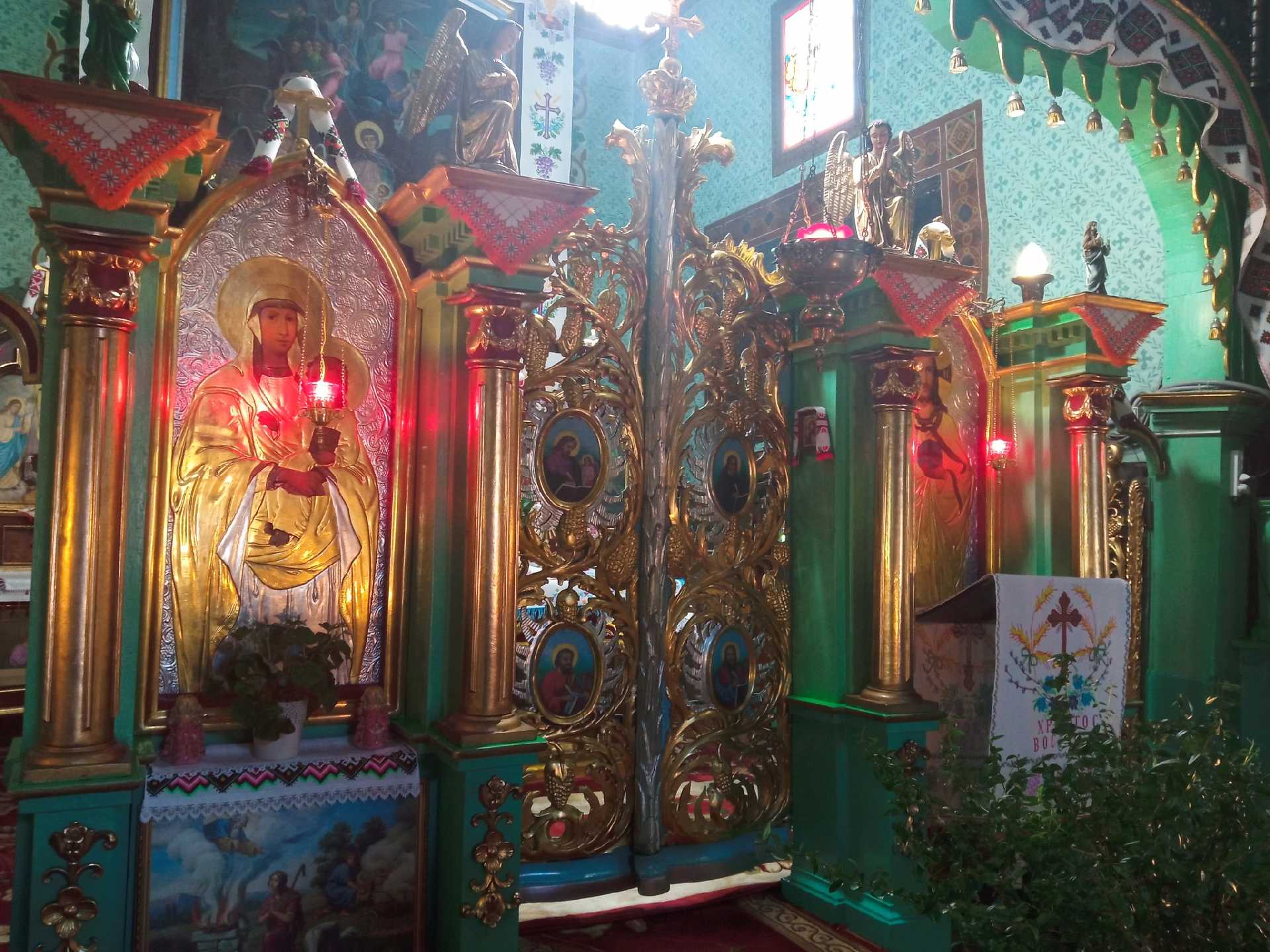 Вийнятнову художню цінність мають іконостас та розписи храму початку ХХ століття: «Створення світу», «Дорога до Емаусу», «Оплакування христа» та інші. Заслуговують уваги образи «Серце Ісуса» (кін. ХІХ ст.), Усікновення голови Івана Хрестителя» (поч. ХХ ст.). Особливо цікавою є запрестольна ікона «Різдво Христове» (поч. ХХ ст.)., на якій зображено класичний сюжет іконопису проте виконаний з елементами українських традицій: замість пастухів до Ісуса прийшли козаки та діти у вишиванках.