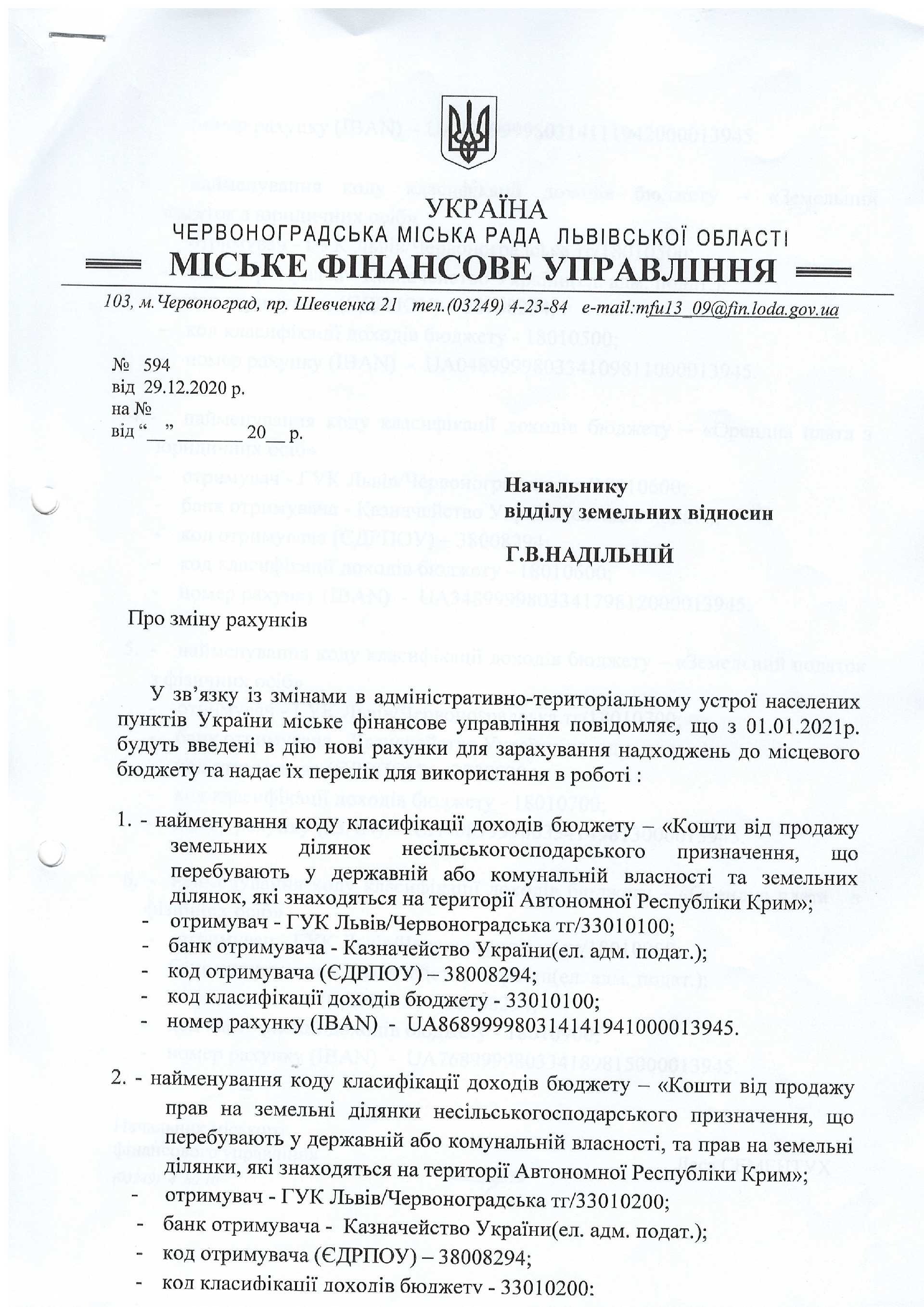 Оголошення (відділ земельних відносин)