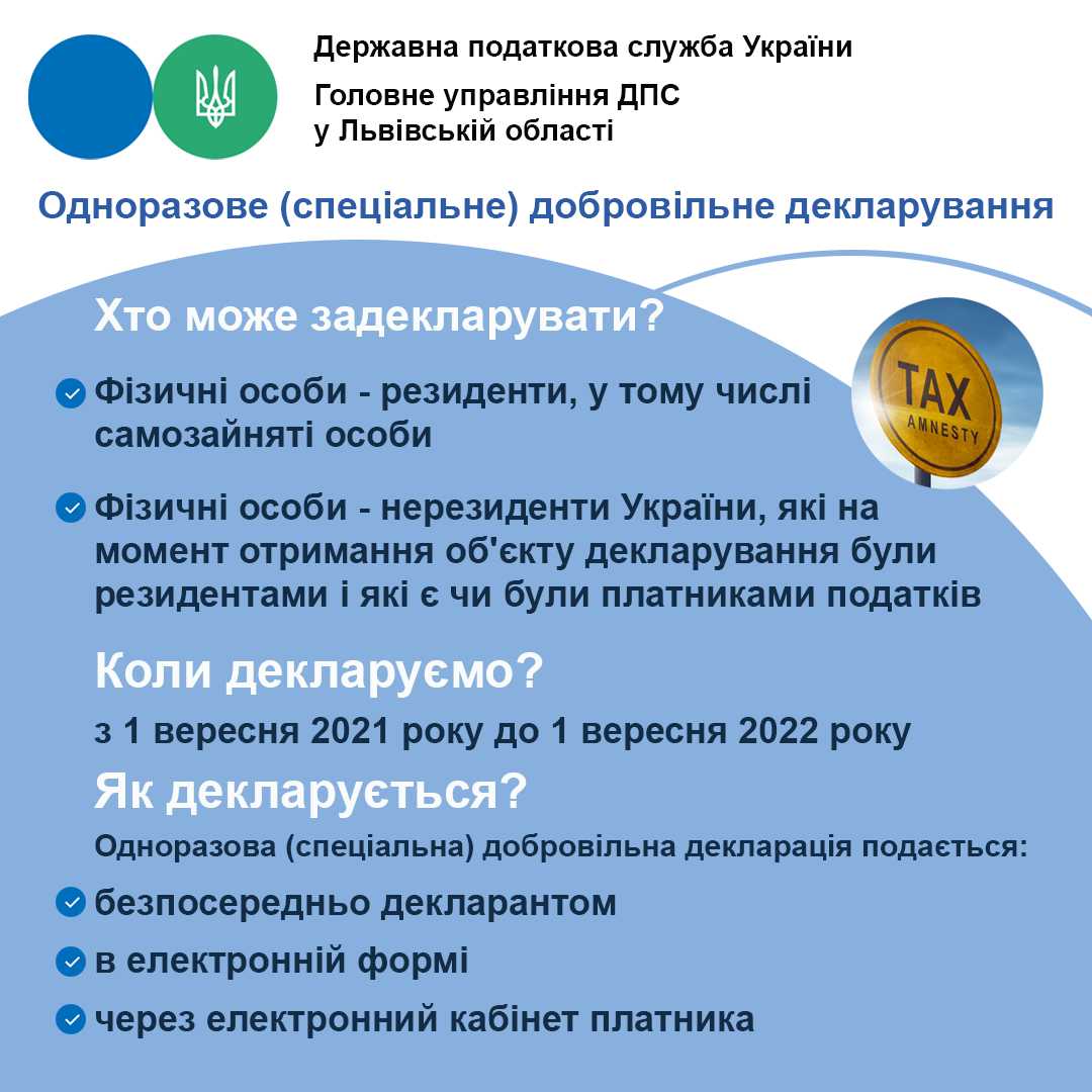 Одноразове (спеціальне) добровільне декларування! Хто може задекларувати? Коли декларуємо? Як декларується?