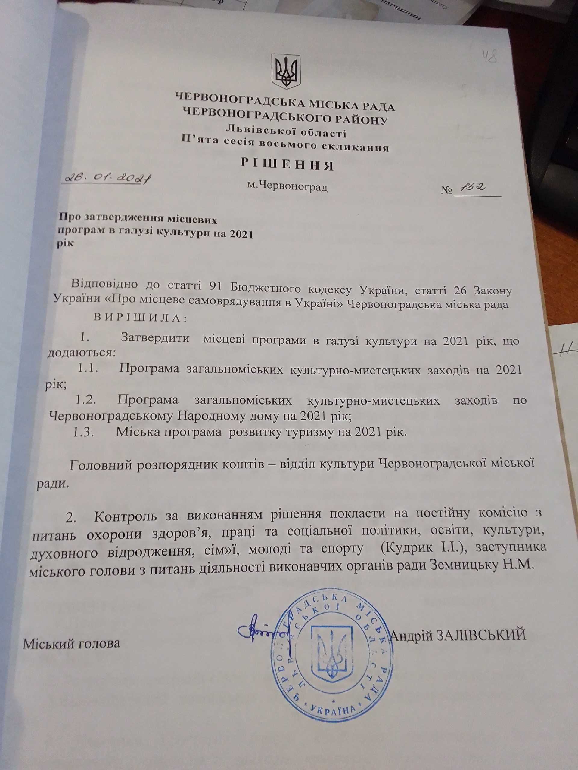 Про затвердження місцевих програм в галузі культури на 2021 рік