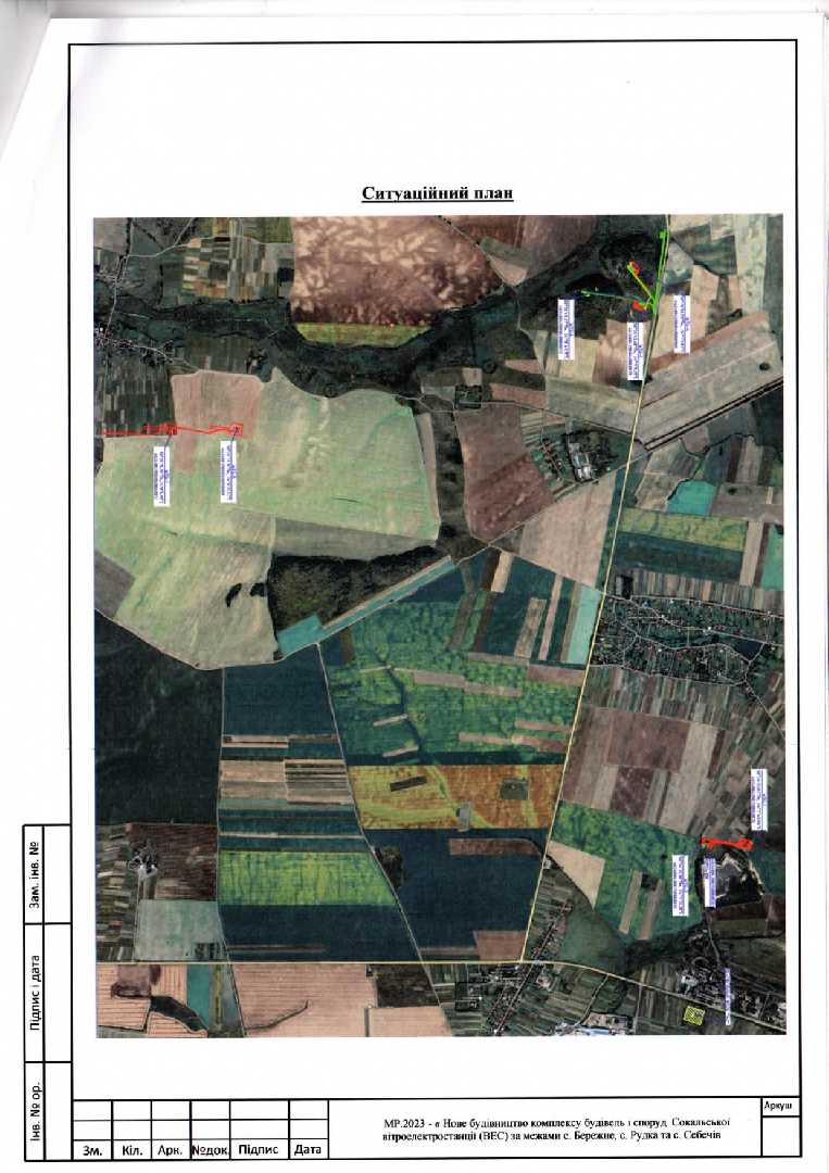 На виконання Закону України "Про адміністративну процедуру" повідомляємо, що 21.02.2024 року розпочалося адміністративне провадження за заявою ТзОВ "Сокальський вітропарк" по справі щодо надання містобудівних умов та обмежень забудови земельних ділянок для проектування об'єкта будівництва "Нове будівництво комплексу будівель і споруд Сокальської вітроелектростанції (ВЕС) за межами с. Бережне, с. Рудка та с. Себечів Червоноградського району, Львівської області" на земельних ділянках: 4624884200:11:000:0032, 4624884200:11:000:0034, 4624884200:04:000:0062, 4624884200:04:000:0063, 4624884200:04:000:0065, 4624884200:04:000:0069 – для будівництва установки вітроелектростанцій;