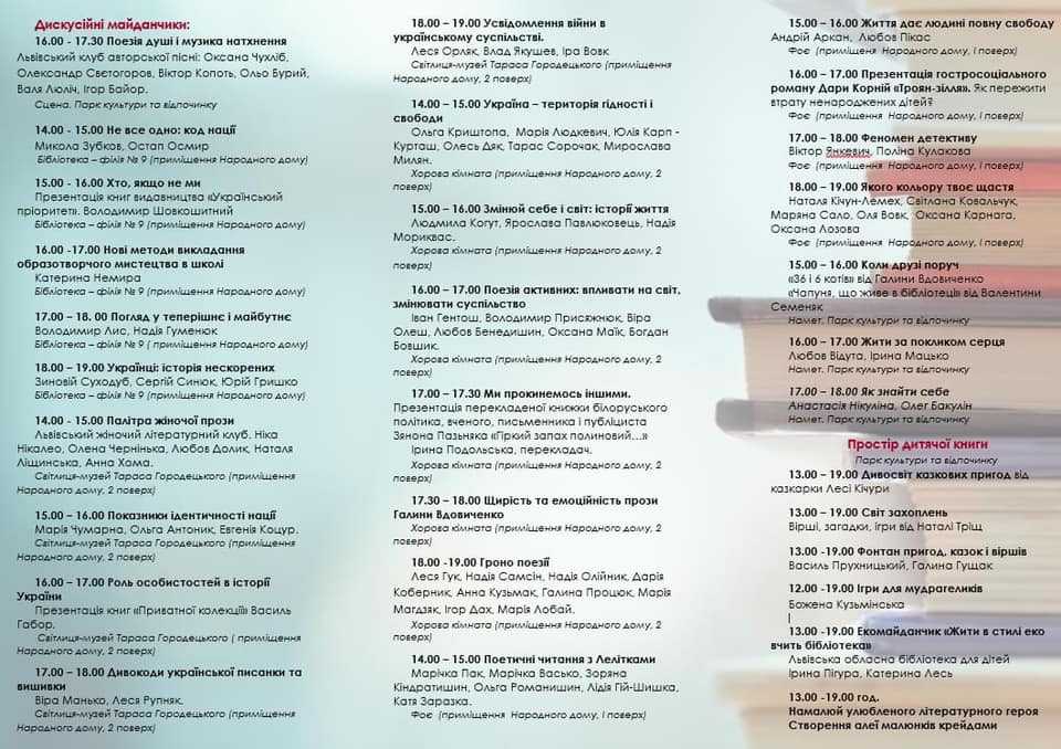 Програма Книжкової толоки "Червоноград читає", яка відбудеться у неділю, 22 серпня, у Парку культури та відпочинку