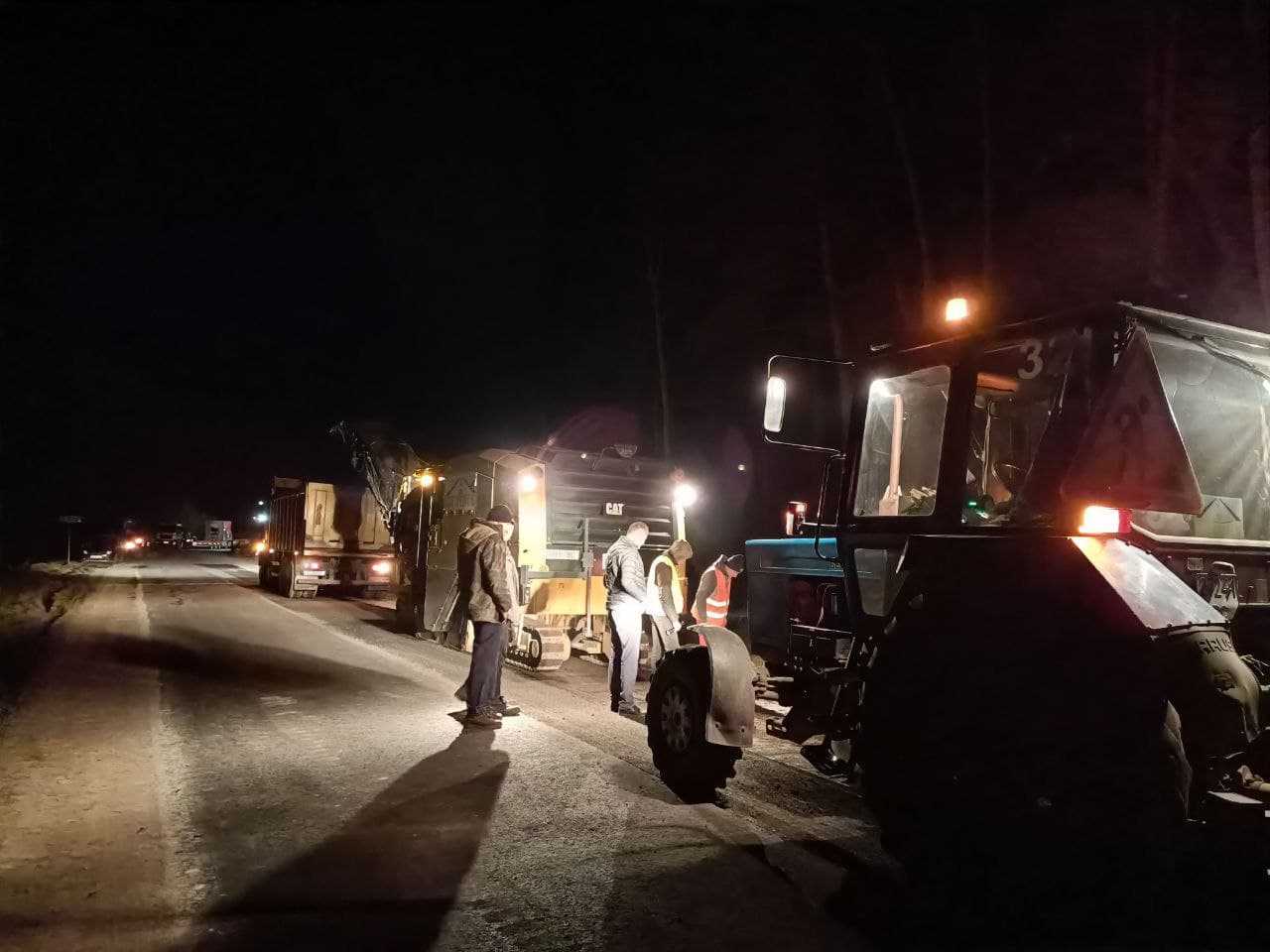 Вночі ПП «РОМА» ліквідовувало дефекти на дорожньому полотні. Фото - старости Волсвина Віктора Притулка Viktor Prytulko
