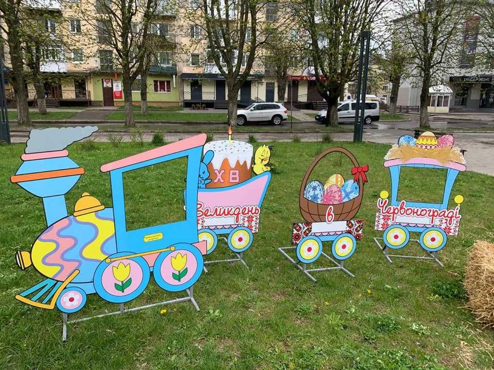 «Прокататись» на паровозику Червоноградської залізниці та сфотографуватись із колоритними писаночками ваша малеча зможе на ось такій яскравій і святковій фотозоні. Бо таки Великдень у Червонограді!