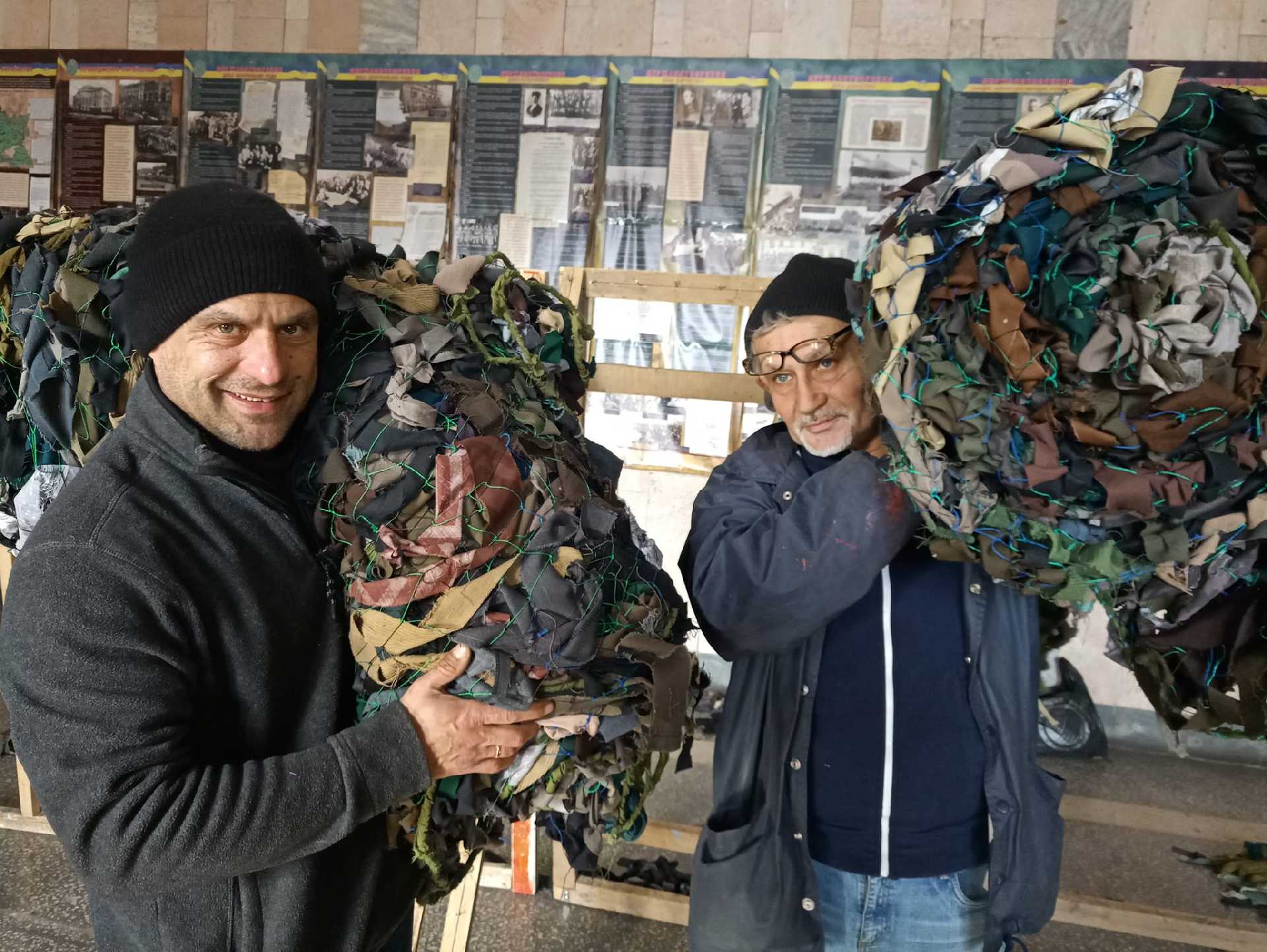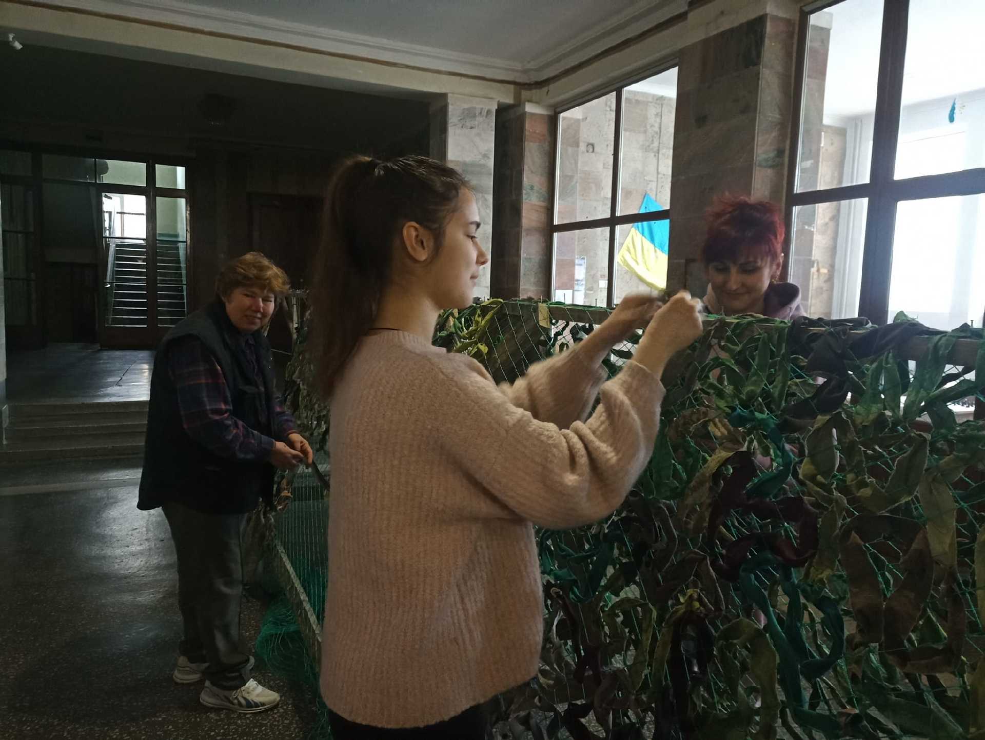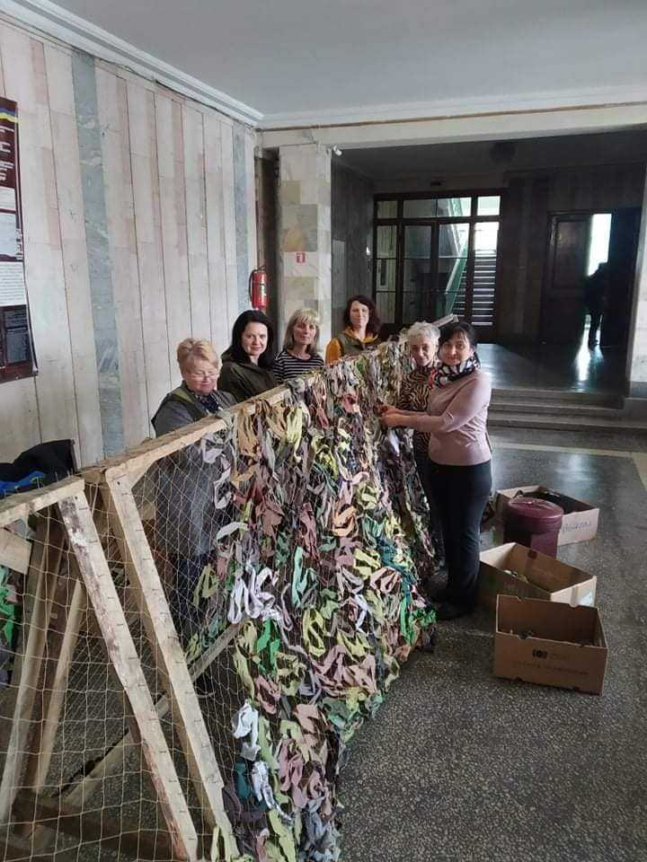 Освоїли працівники Народного Дому і нову для себе галузь виробництва – плетіння маскувальних сіток. Допомагають їм у цьому чимало волонтерів, дітей, які займаються у гуртках, переселенців. Саме сьогодні завершено плетіння ювілейного виробу – українські захисники отримають шістдесяту маскувальну сітку від поплетушок Народного дому (загальна їх площа становить більше 2500 м кв). Наразі, є потреба у тканині захисних кольорів - зеленого, сірого, коричневого.