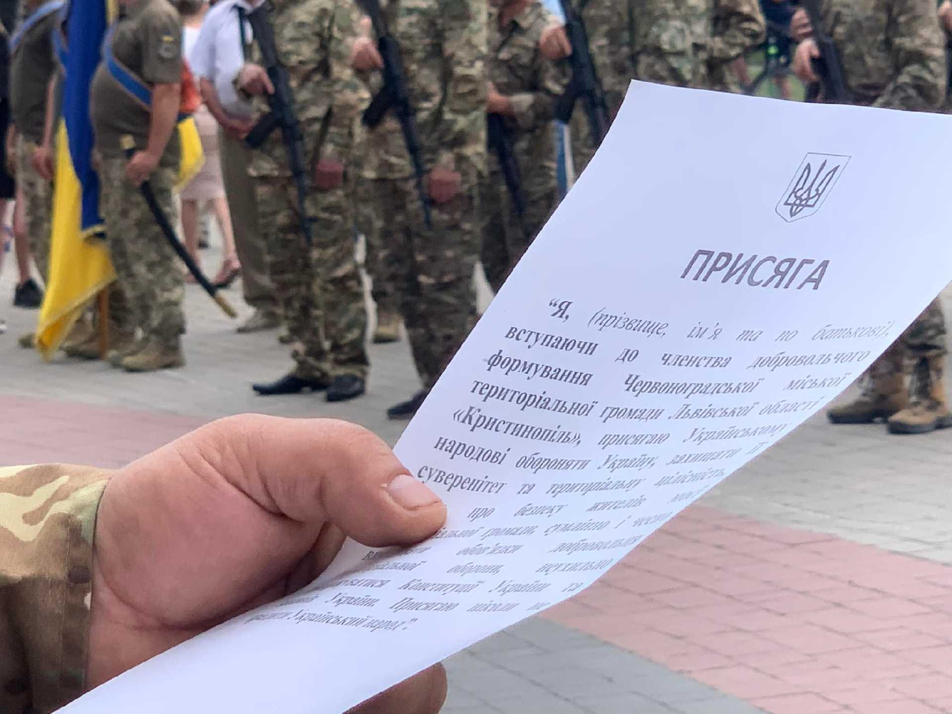 Близько сотні добровольців у неділю, 26 червня, склали присягу обороняти Україну, захищати її суверенітет та територіальну цілісність, дбати про безпеку громади…