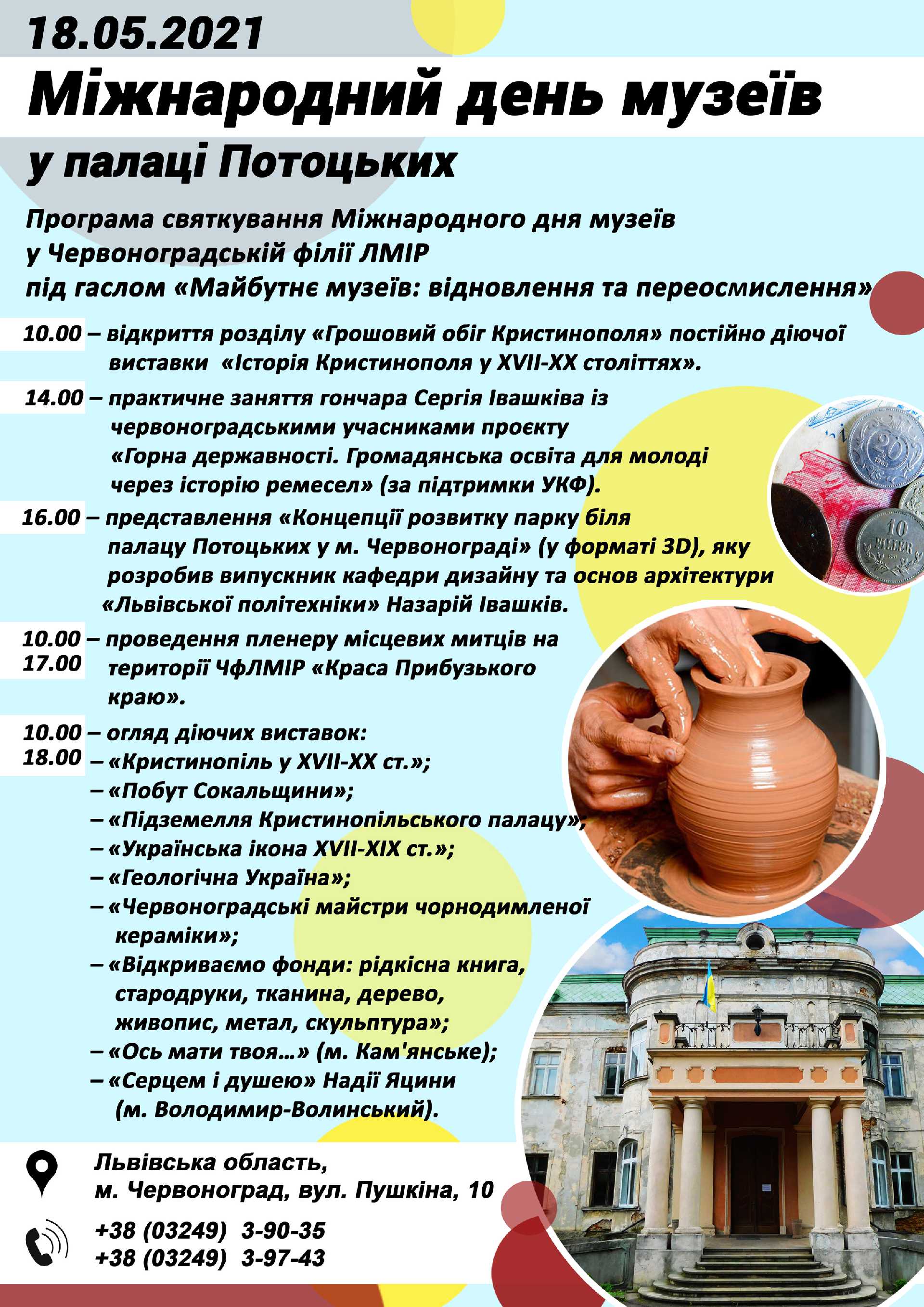 Червоноградська філія Львівського музею історії релігії (палац Потоцьких) запрошує усіх червоноградців та гостей міста долучитися до святкування Міжнародного дня музеїв, яке відбудеться 18 травня 2021 року.