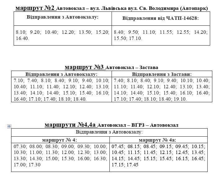 Відправлення з м.Шептицький АС: 8.30; 10:00; 11:30; 13:00; 14:30; 16:00; 17:30.