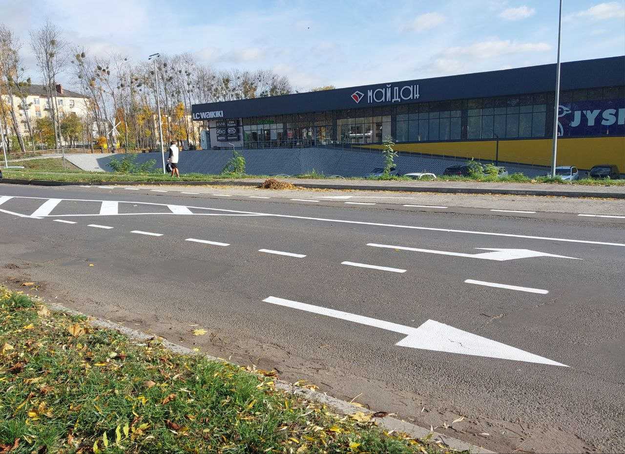 З метою організації безпеки дорожнього руху транспорту та пішоходів, забезпечення заходів для орієнтування водіїв в дозволених напрямках руху на виконання рішення виконавчого комітету Червоноградської міської ради «Про погодження Проєкту організації дорожнього руху по вул.Героїв Майдану,10 у м. Червоноград Львівської області», в районі ТРЦ «Майдан» по вул. Героїв Майдану, підрядною організацією нанесено нову горизонтальну розмітку проїжджої частини. На даний час продовжується встановлення дорожніх знаків відповідно до погодженого проєкту організації дорожнього руху.