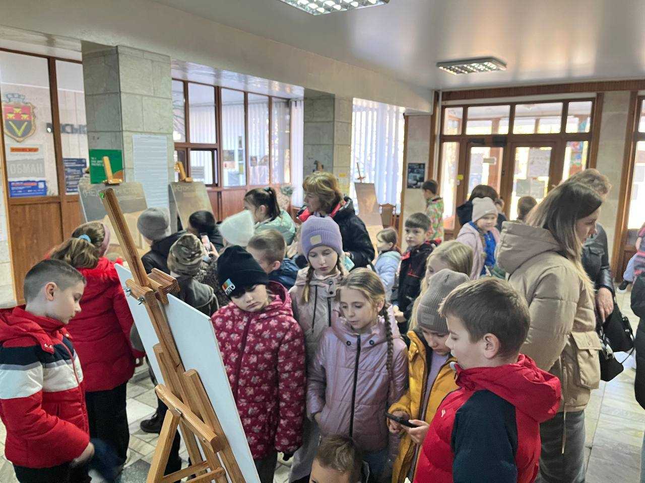 Школярі четвертих класів Гімназії №10 разом із класними керівниками завітали до Шептицької міської ради та відвідали виставку, яка розповідає історії внутрішньо переміщених українців.
