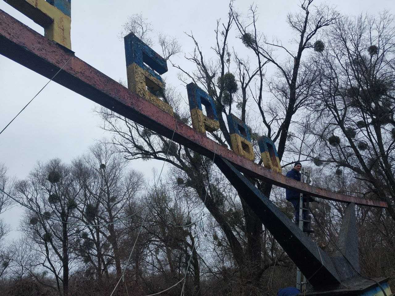 Сьогодні працівники КП «Комунальник» демонтували металеві літери старої назви міста зі сторони Бендюги.