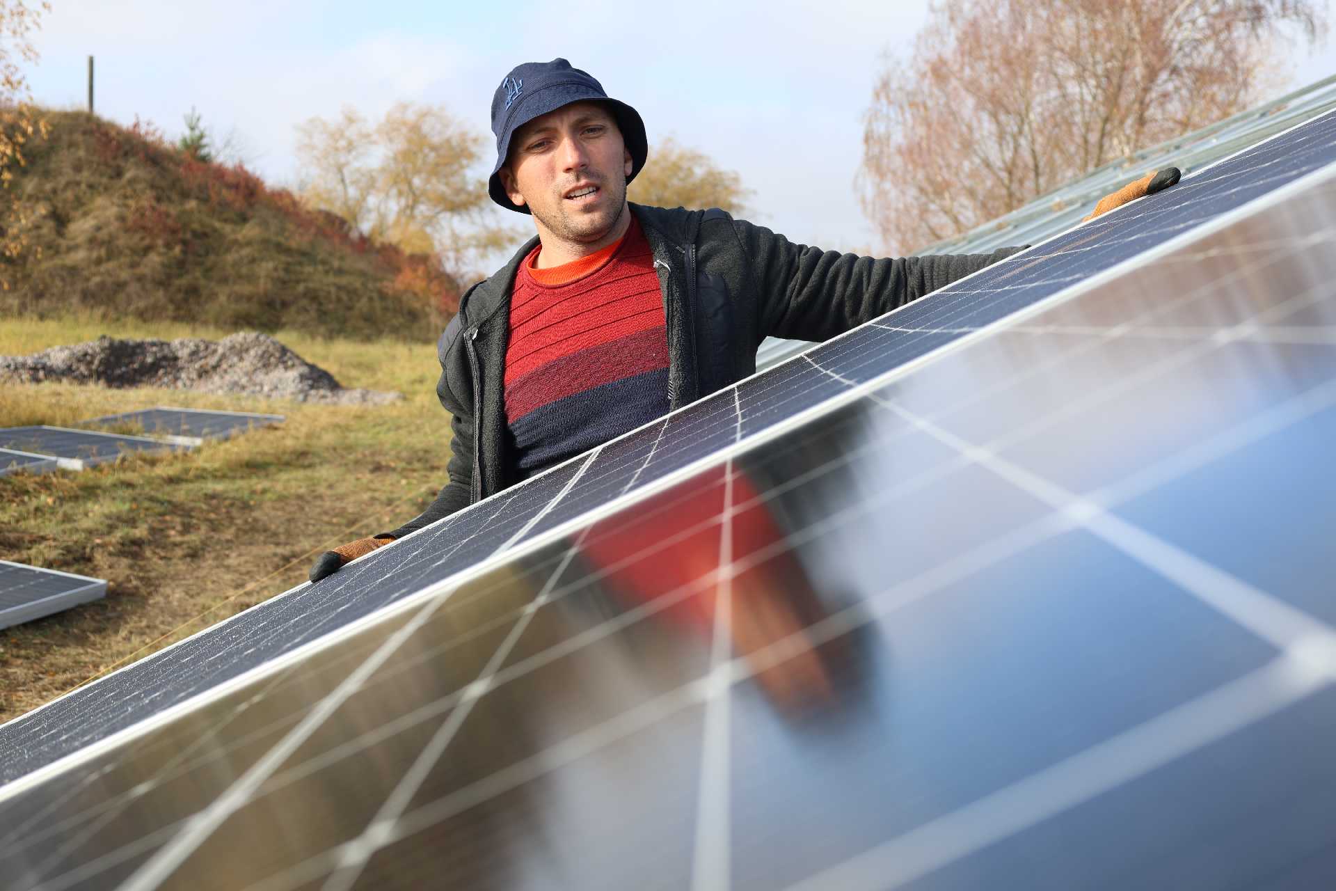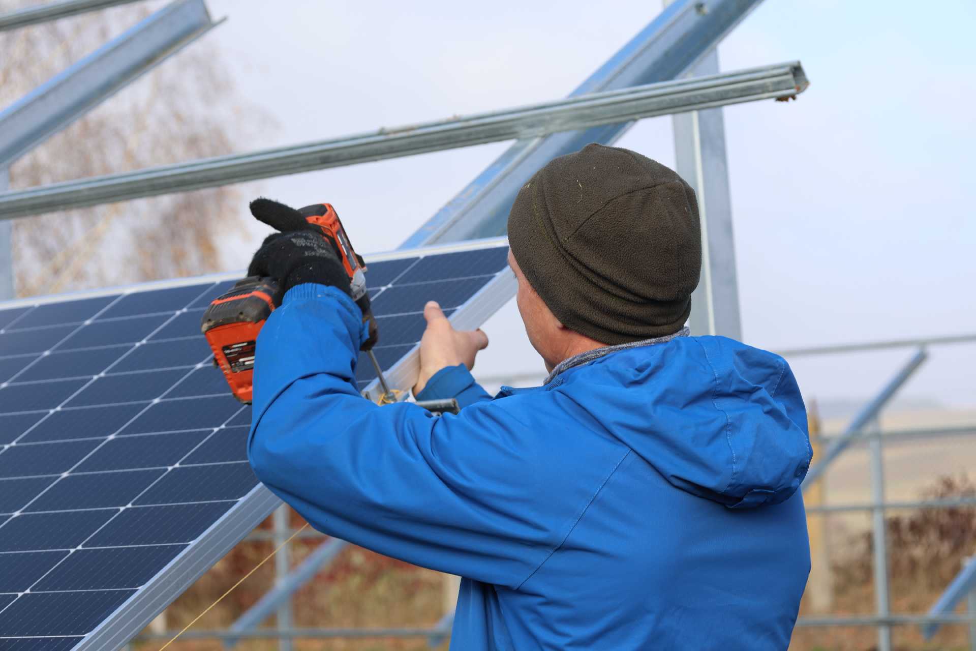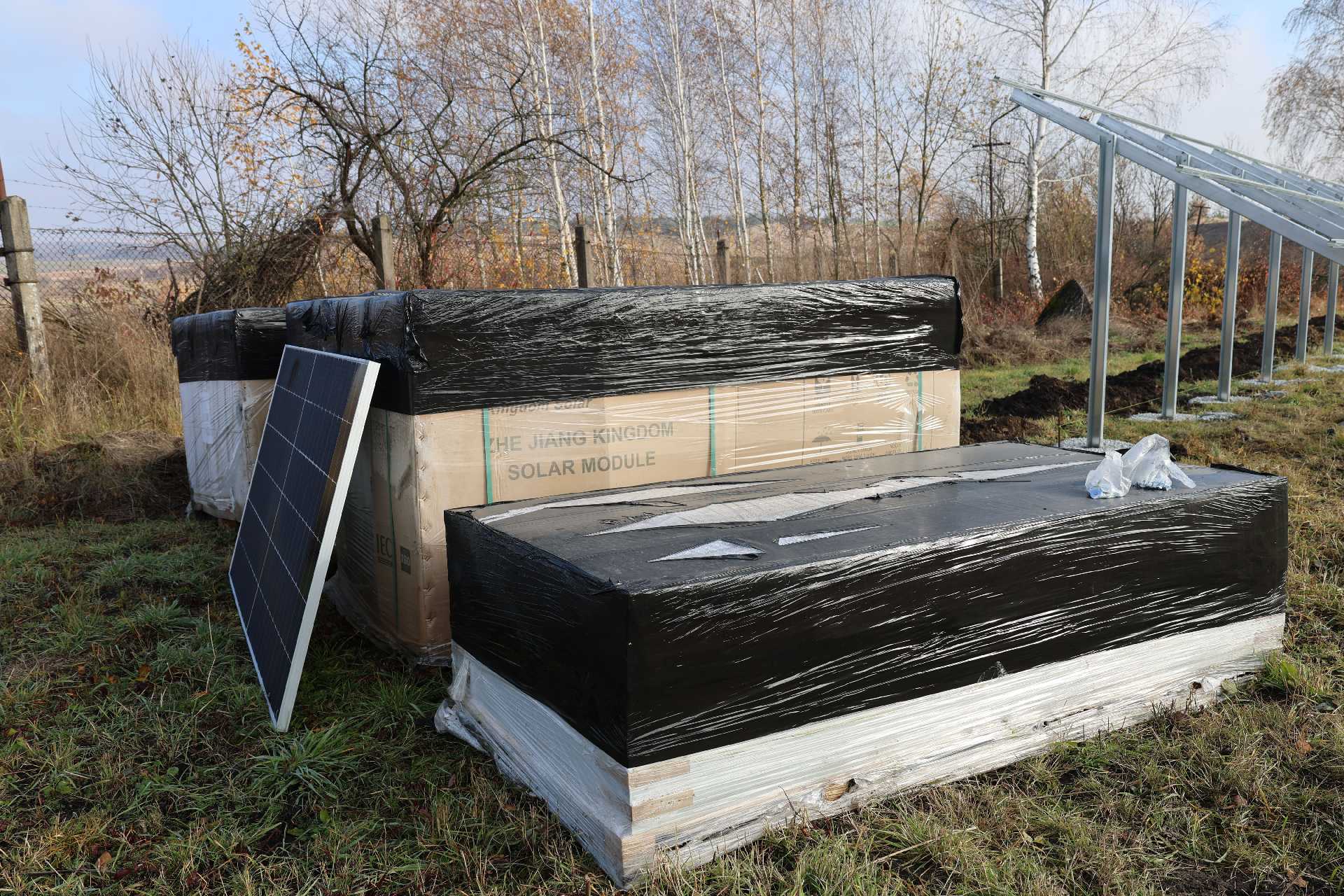 Як розповів представник підрядника Олександр Яковенко, працівники вже змонтували металеві конструкції, на які встановлюватимуть сонячні панелі. «Після цього прокладаємо кабельну мережу, підводимо її до трансформаторів. Далі встановлюємо та підключаємо інверторне обладнання, а також щити захисту по змінному та постійному струму» - розповів Олександр.