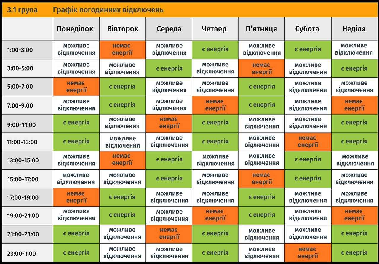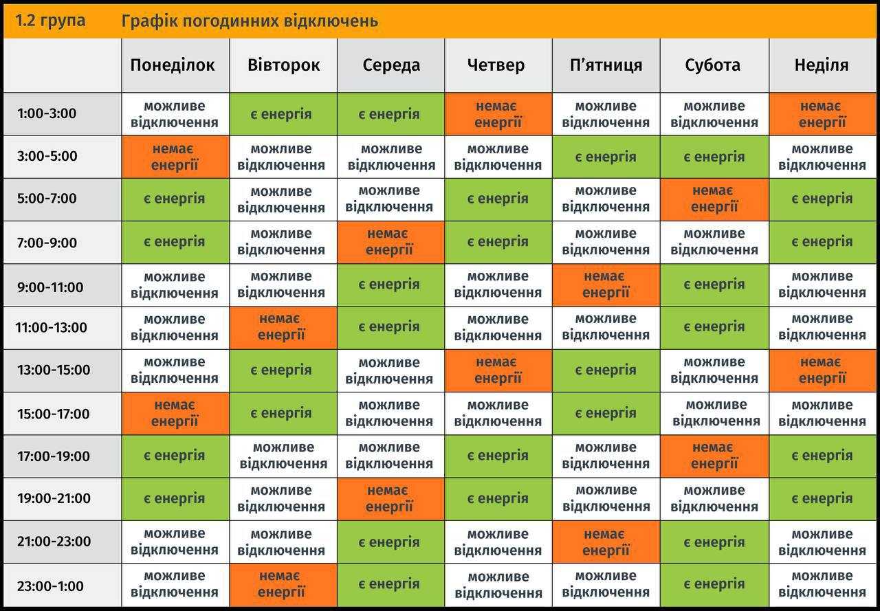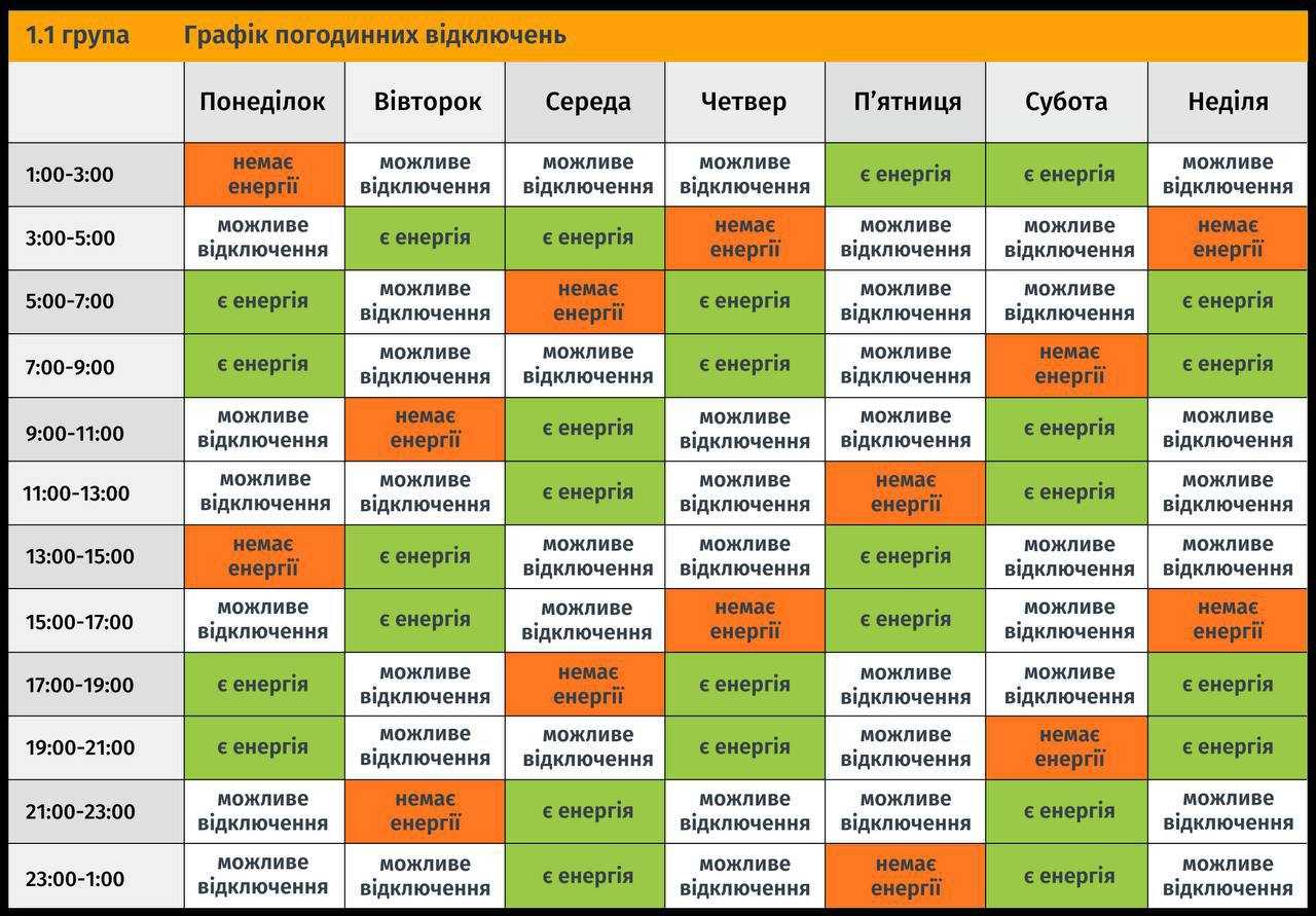 Ця інформація є уточненням, які саме години у червоних та білих періодах постійного графіку (можливі відключення) будуть знеструмлені для кожної групи цієї доби, відповідно до розпоряджень НЕК «Укренерго».