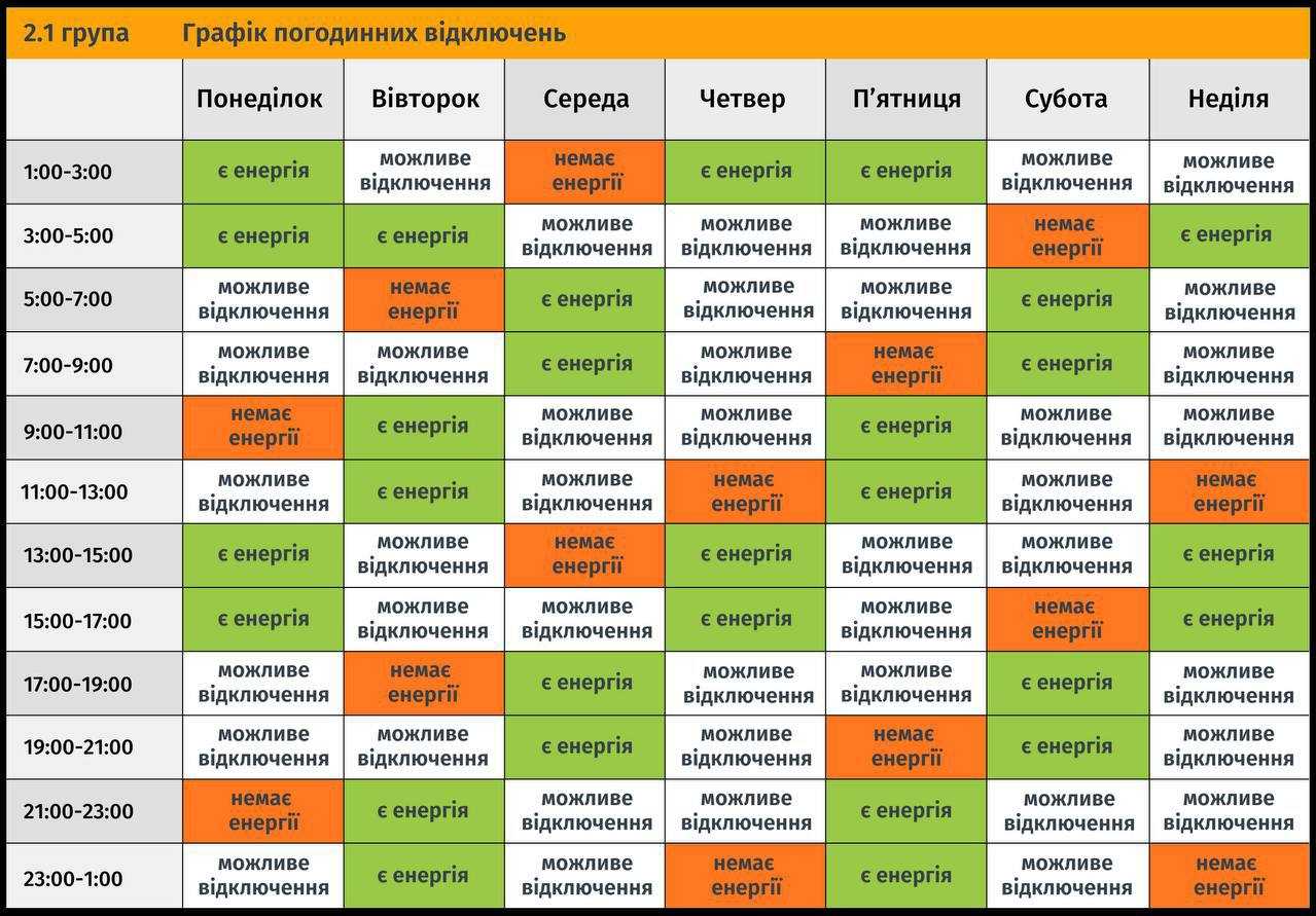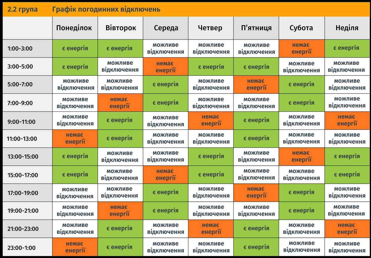 У графіку стало більше білих клітинок («Можливі відключення»), оскільки терміни знеструмлень відтепер можуть бути довшими, залежно від вказівок НЕК «Укренерго».