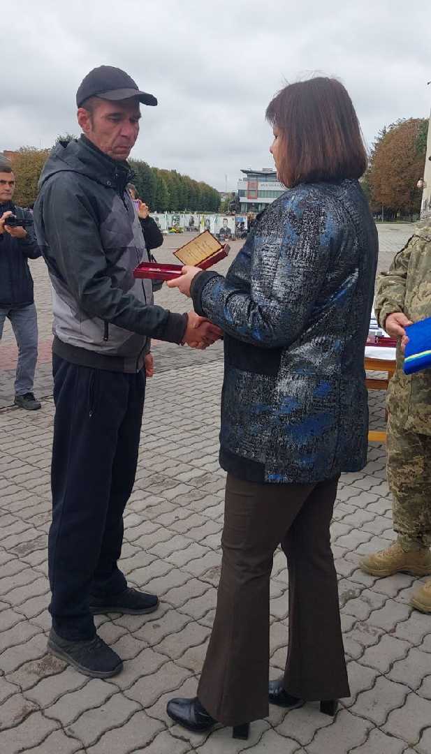 Державні нагороди рідним загиблих Героїв вручила під час урочистого заходу до Дня Захисників і Захисниць перший заступник голови Червоноградської районної військової адміністрації Ірина Наливайко.