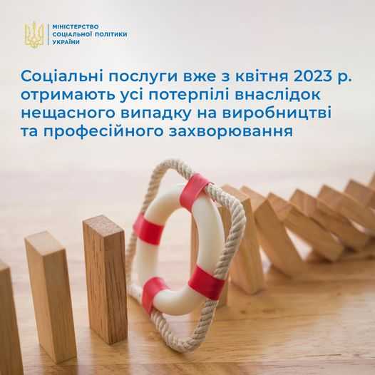 З 1 січня в Україні вступила в дію нова редакція Закону #1105, яка визначила, що соціальні послуги і послуги медичного догляду для громадян, які потерпіли внаслідок нещасного випадку на виробництві та професійного захворювання, мають надаватись відповідно до вимог Законів України “Про соціальні послуги”, "Про реабілітацію", "Про реабілітацію осіб з інвалідністю".