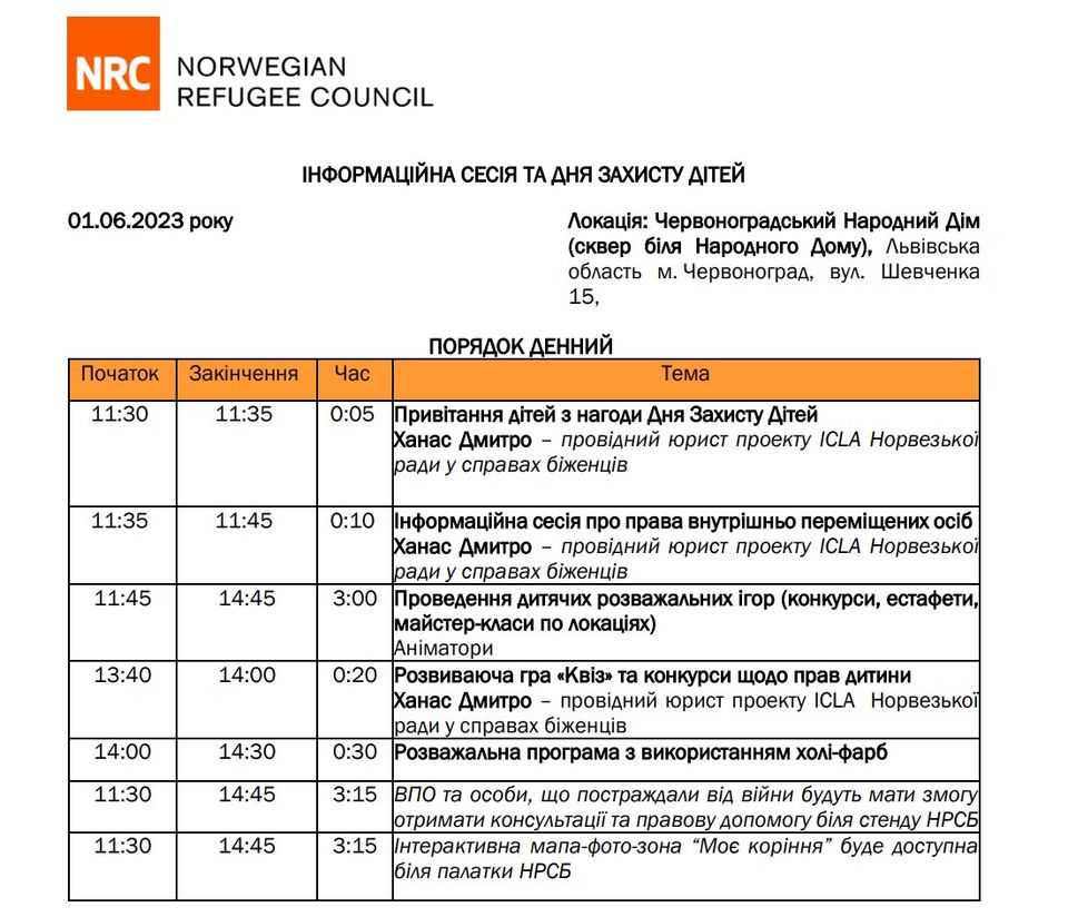 Запрошуємо діток з батьками взяти участь у розважальних заходах, що відбудуться в Червонограді 1 червня в Парку культури і відпочинку. Цьогоріч до організації цікавих локацій та творчих активностей для малечі долучились Червоноградський будинок дитячої та юнацької творчості Червоноградська міська організація Товариства Червоного Хреста Червоноградська публічна бібліотека Громадська організація "Ніка", ГО "Промінь Надії", майстрині творчої спільноти Країна Нand Made Червоноград "Спортивна федерація для атлетів з особливостями розумового і фізичного розвитку", "Норвезька рада у справах біженців".