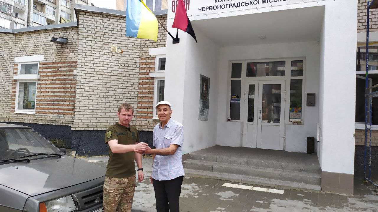 У Червоноградський «Будинок воїна» звернувся мешканець міста Степан Кушпетюк, який вирішив передати своє авто для потреб армії. Ключі від машини він вручив директору закладу Михайлові Палюзі.